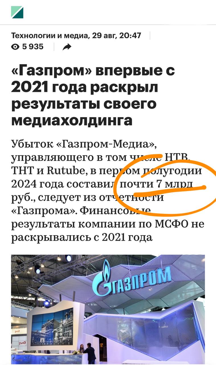 🤓 Вчера поздним вечером на РБК вышла статья, описывающая негативные (убыток 7 ярдов за полгода) результаты деятельности Газпром медии. Мы бы назвали ее разгромной.