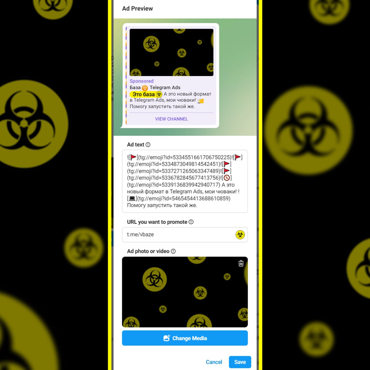 Из интересного, формат GIF не поддерживается. Зато в GIF конвертит сам Telegram Ads, если кинешь MP4 без звука. Такая же история у нас и в мессенджере, насколько я помню.