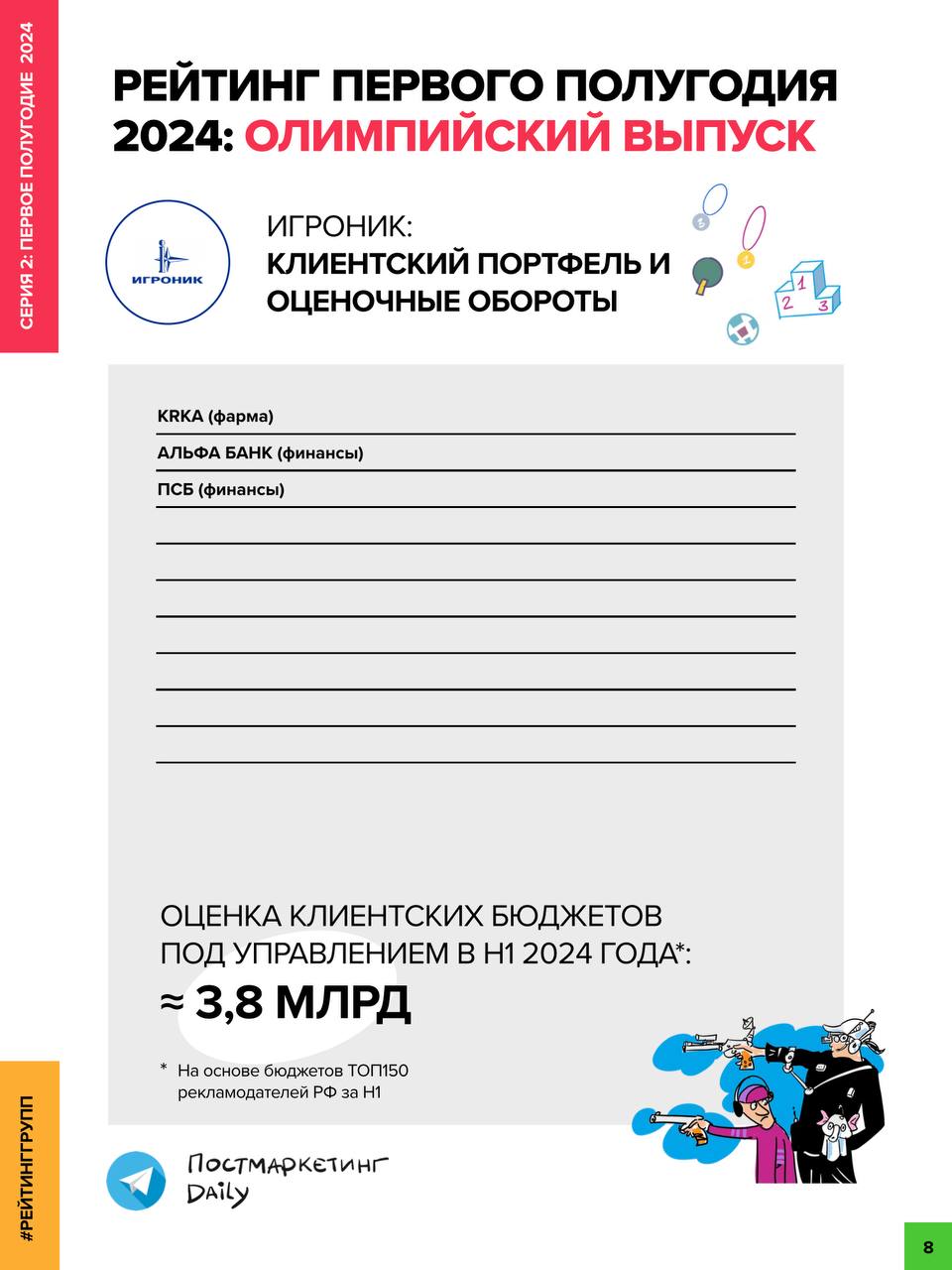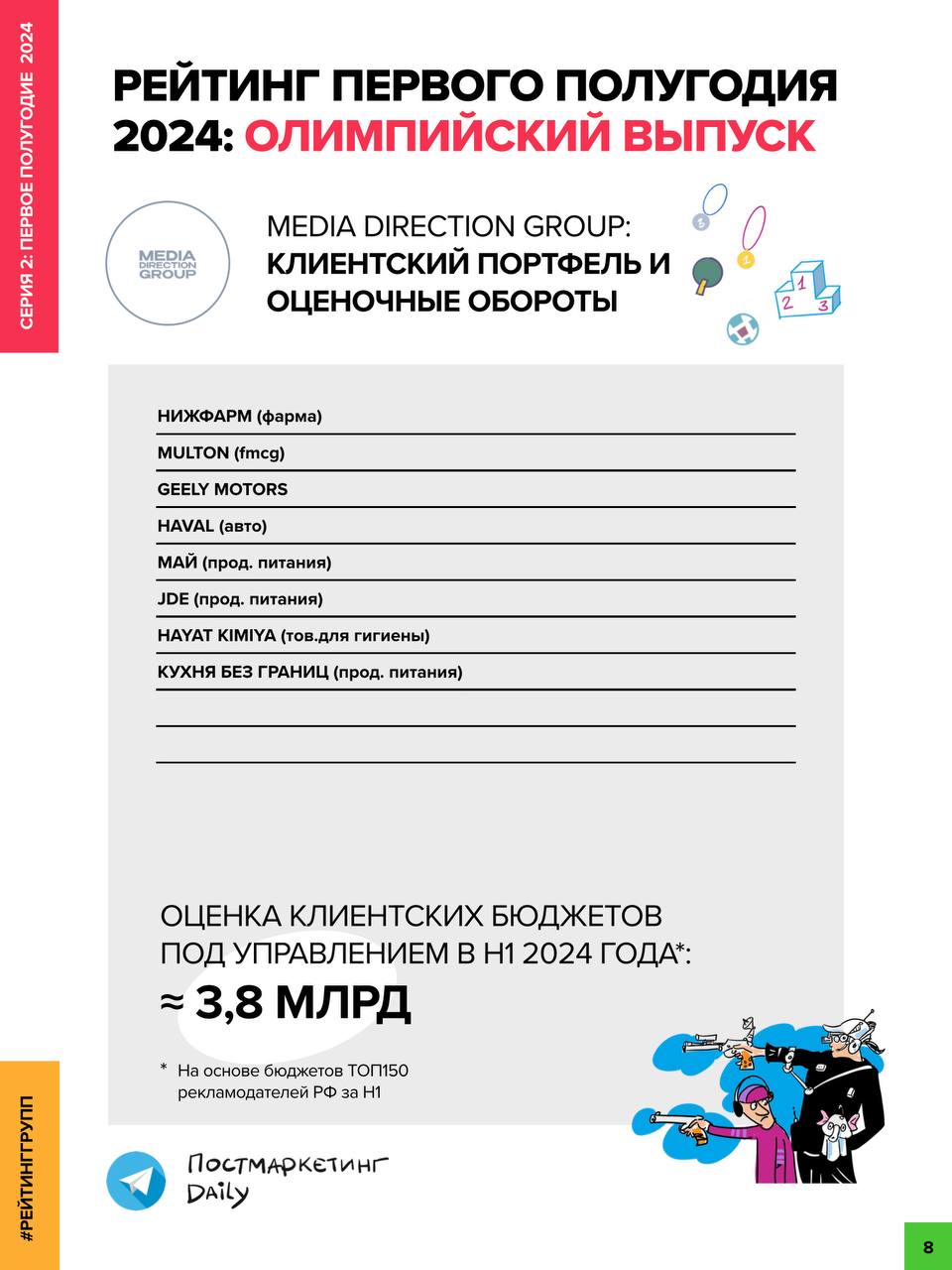⚡️ И снова — Рейтинг оборотов рекламных групп за первое полугодие 2024 от Постмаркетинга, на основе бюджетов ТОП150 рекламодателей РФ.