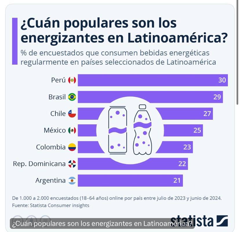 В Перу регулярно употребляют энергетики 30% населения (18-64 лет). Это самый большой показатель в Латинской Америке. И, возможно, в мире, судя по общей статистике региона.