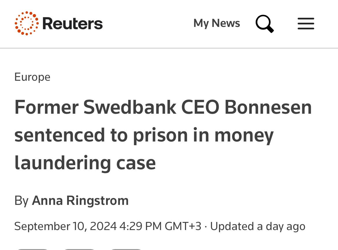 🤓 Какой любопытный судебный прецедент. Бывший президент Swedbank приговорен судом за обманчивые комментарии для СМИ.