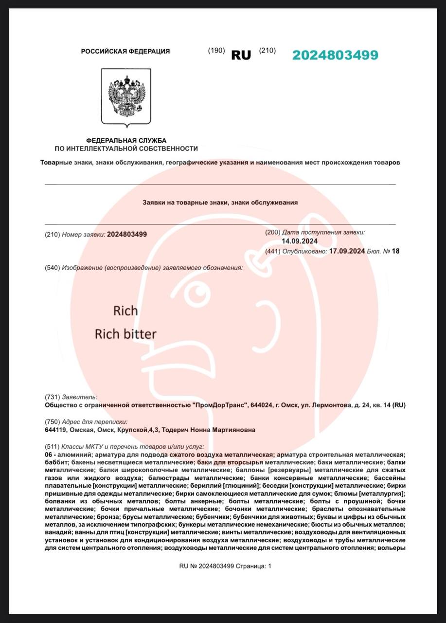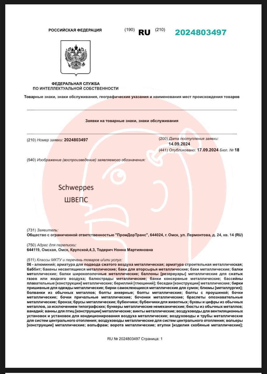 😵 Маленькая компания «Промдортранс» из Омска (оборот 140 тыс/год) массово подает на регистрацию бренды Кока Колы в непищевых категориях.