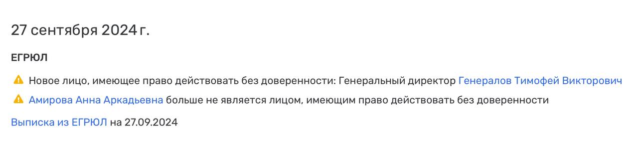 Анна Амирова (являющаяся по совместительству директором по развитию бизнеса группы) покинула позицию гендира агентства, а Тимофей Генералов — занял.