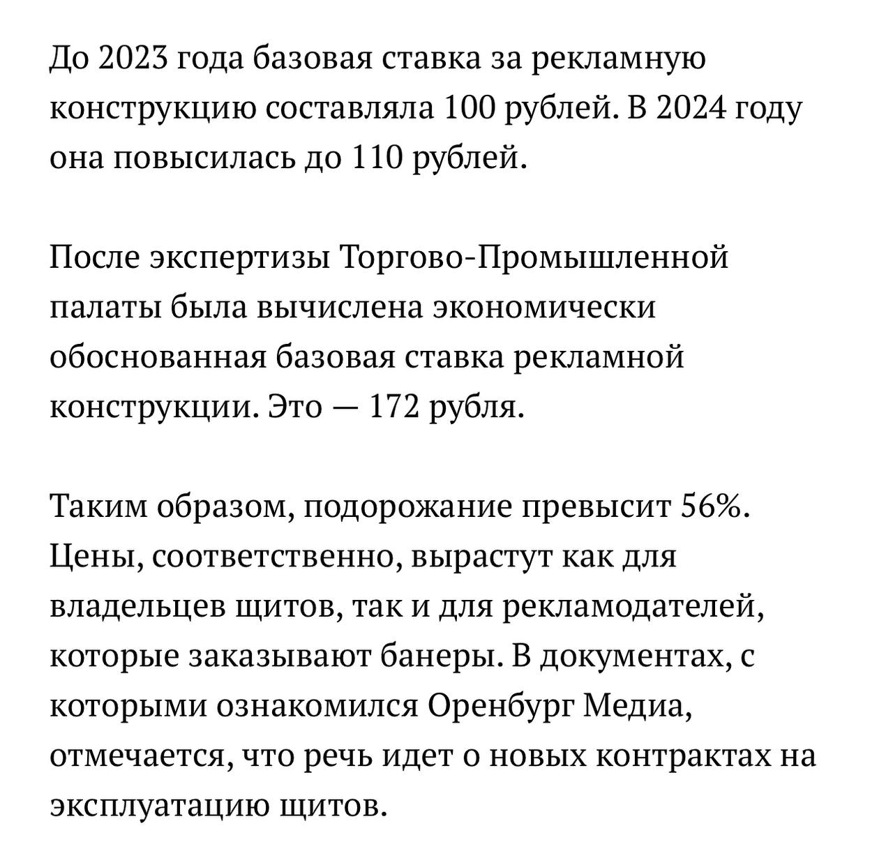 🤓 На основании экспертизы Торгово-Промышленной палаты Оренбурга в городе повысят базовую ставку на использование рекламных конструкций. Подорожание оценивается в объеме 56% оно коснется только новых контрактов.