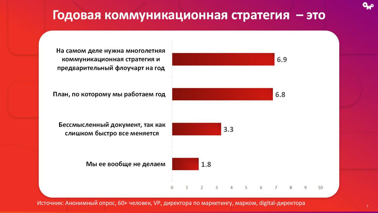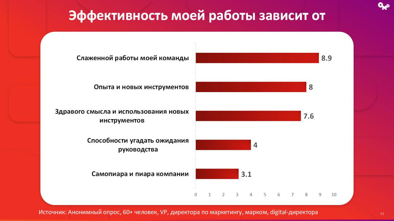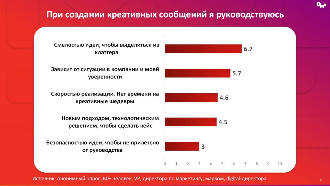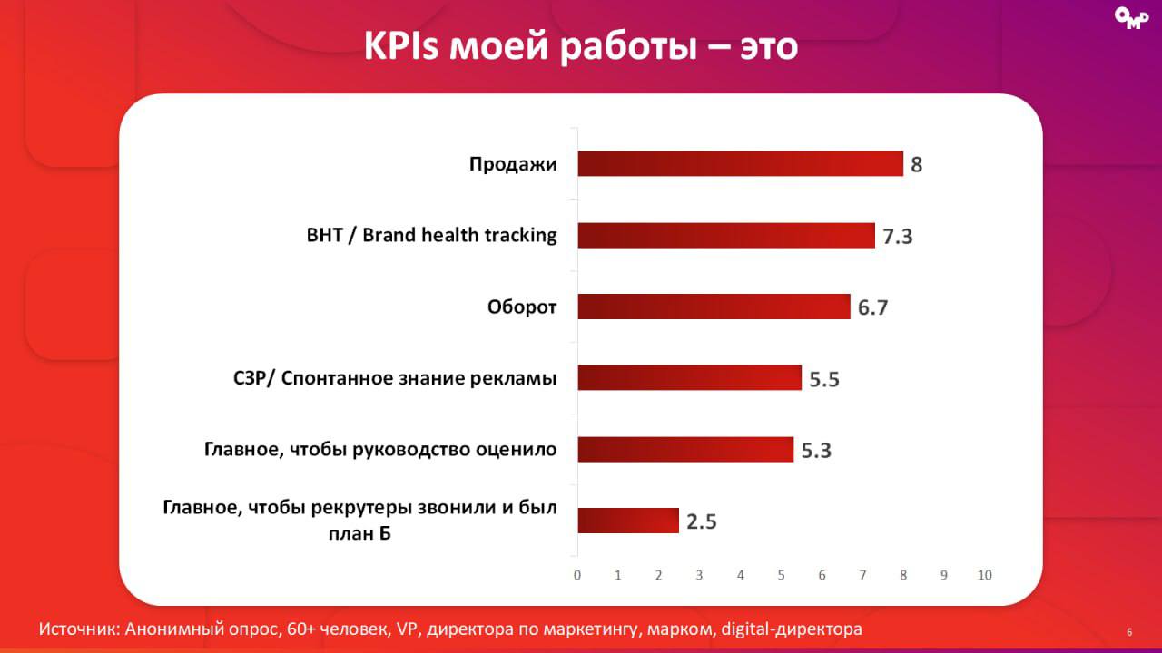 π€ OMD ΠΏΠΎΠ΄Π³ΠΎΡΠΎΠ²ΠΈΠ» Π°Π½ΠΎΠ½ΠΈΠΌΠ½ΡΠΉ ΠΎΠΏΡΠΎΡ ΠΌΠ°ΡΠΊΠ΅ΡΠΈΠ½Π³-Π΄ΠΈΡΠ΅ΠΊΡΠΎΡΠΎΠ², ΡΡΠΎΠ±Ρ ΠΏΠΎΠ½ΡΡΡ ΠΈΡ Π½Π°ΡΡΡΠΎΠ΅Π½ΠΈΡ. ΠΡΡΡ Π»ΡΠ±ΠΎΠΏΡΡΠ½ΡΠ΅ ΡΠ΅Π·ΡΠ»ΡΡΠ°ΡΡ. ΠΠ°ΠΏΡΠΈΠΌΠ΅Ρ, ΠΎΠΊΠ°Π·ΡΠ²Π°Π΅ΡΡΡ, ΡΡΠΎ ΠΌΠ°ΡΠΊΠ΅ΡΠΎΠ»ΠΎΠ³ΠΈ ΠΎΡΠΈΠ΅Π½ΡΠΈΡΠΎΠ²Π°Π½Ρ Π½Π° «ΡΠΌΠ΅Π»ΠΎΡΡΡ ΠΈΠ΄Π΅ΠΈ», ΠΏΡΠΎΠ΄Π°ΠΆΠΈ Π΄Π»Ρ Π½ΠΈΡ Π²Π°ΠΆΠ½Π΅Π΅ Π±ΡΠ΅Π½Π΄-ΠΌΠ΅ΡΡΠΈΠΊ, Π° ΠΏΡΠΈΠΎΡΠΈΡΠ΅ΡΠΎΠΌ ΡΠ²ΠΎΠ΅ΠΉ ΡΠ°Π±ΠΎΡΡ ΠΊΠΎΠ»Π»Π΅Π³ΠΈ ΠΠ ΡΡΠ°Π²ΡΡ «Π·Π²ΠΎΠ½ΠΊΠΈ ΡΠ΅ΠΊΡΡΡΠ΅ΡΠΎΠ²».