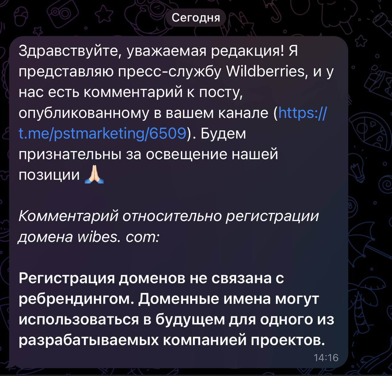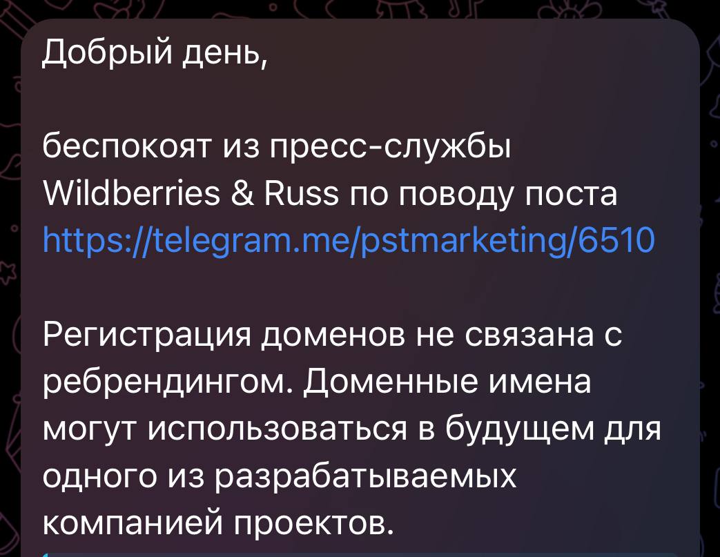 🤓 Представители PR-службы Wildberries просили передать, что компания не планирует ребрендиться в Wibes.