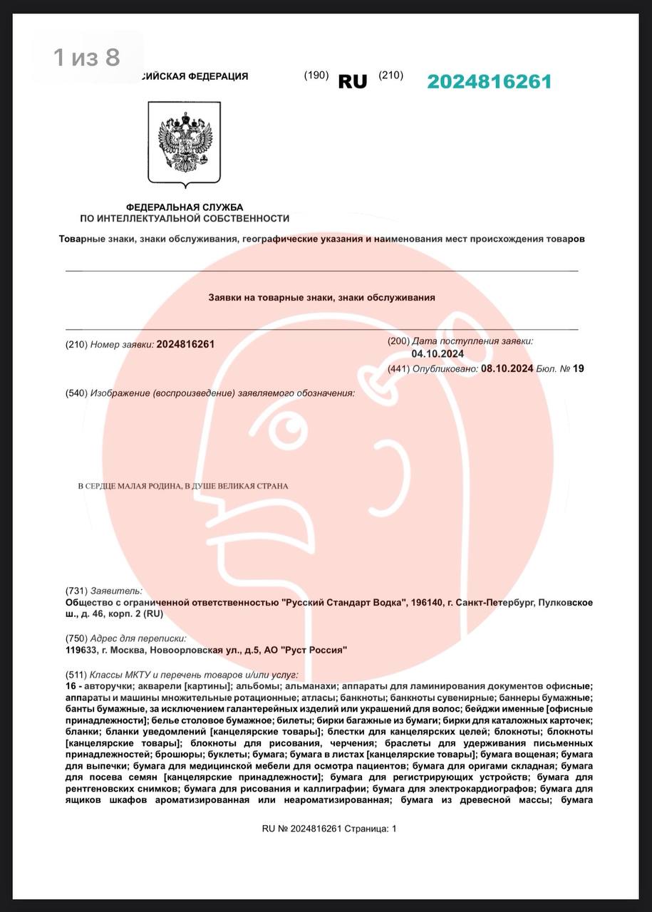 «В душе — малая родина, в сердце — великая страна», — регистрирует Русский стандарт.