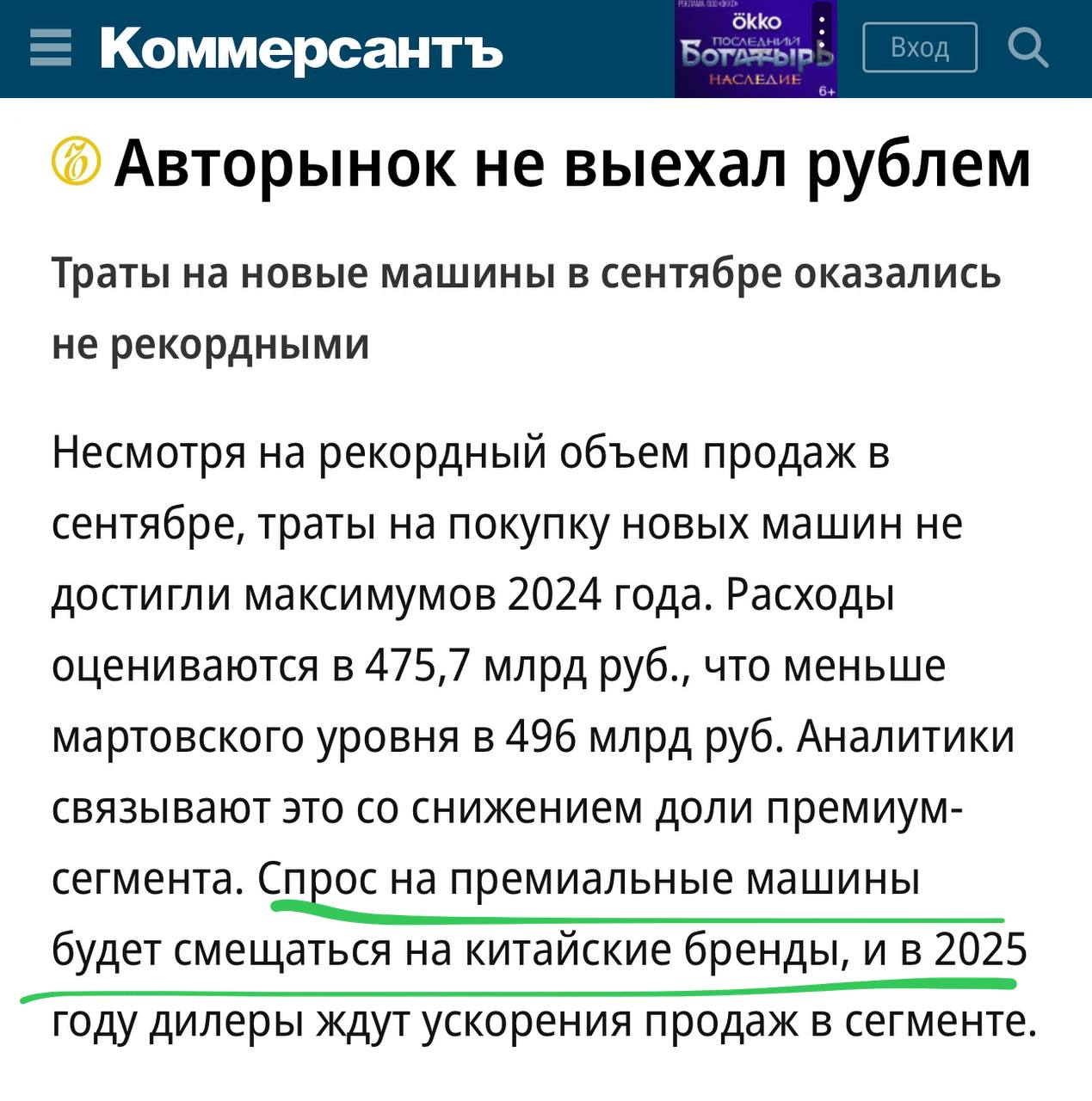🤓 Обращаем внимание на всего один важный факт: «Спрос на премиальные машины будет смещаться на китайские бренды»