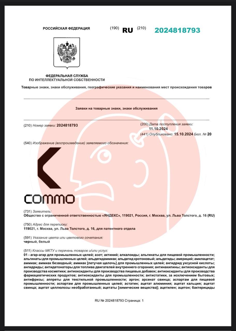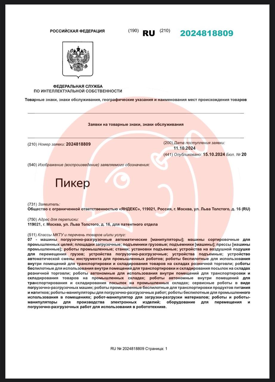 Из не банального. Озон регистрирует «Икспирити», а Яндекс: «Пикер» и «Коммо». Что это нам не ведомо, но скоро — из каждого экосистемного утюга.