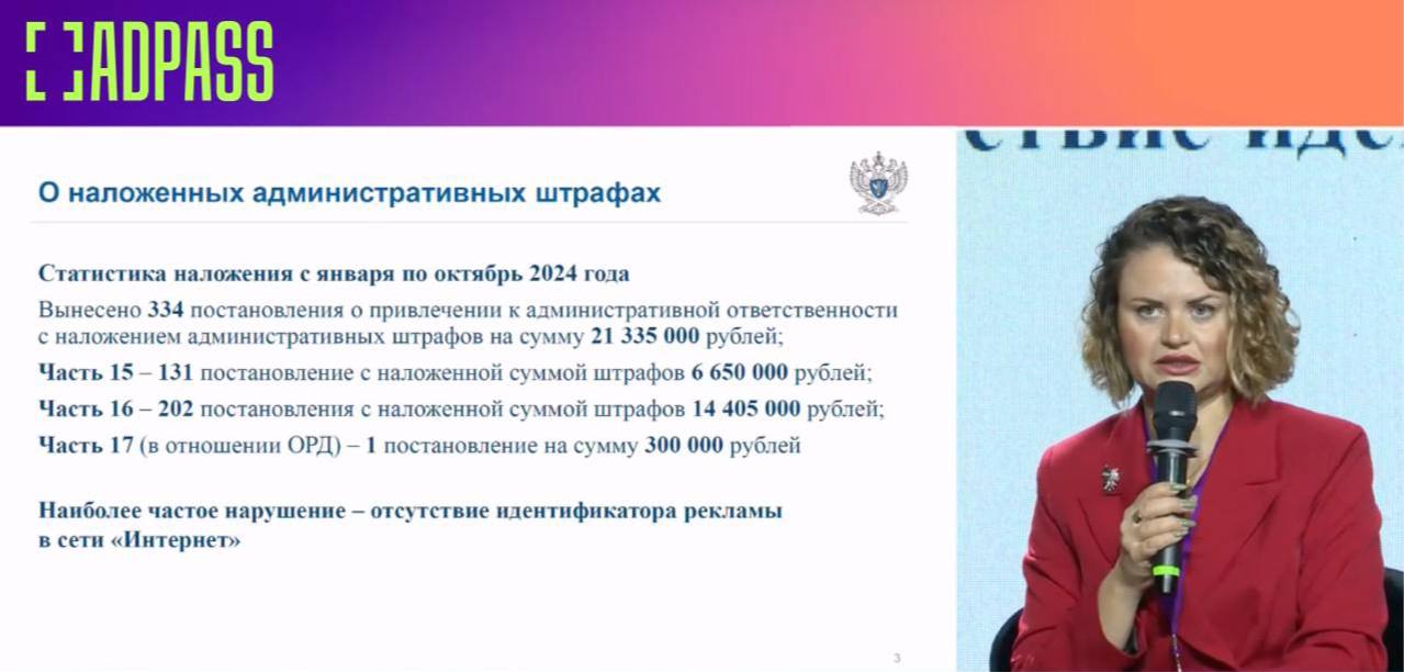 - И 1 штраф на сумму 300 тыс. рублей за нарушение закона о маркировке оператором рекламных данных: (ОРД его сейчас обжалует).