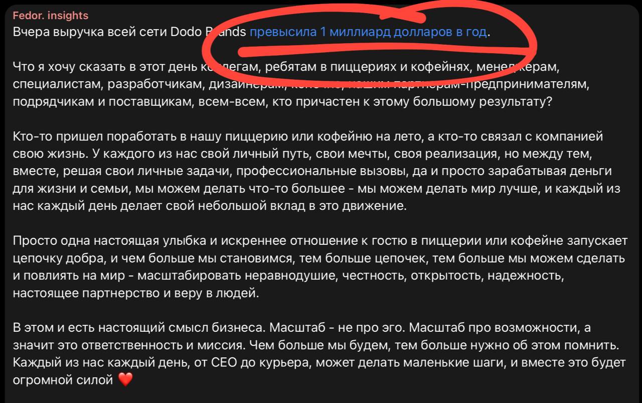 🤓 Додо хвастается выручкой в миллиард долларов. Какова фактическая прибыль на этом обороте — Федор зрителям не говорит. Рост год к году символические 1%.