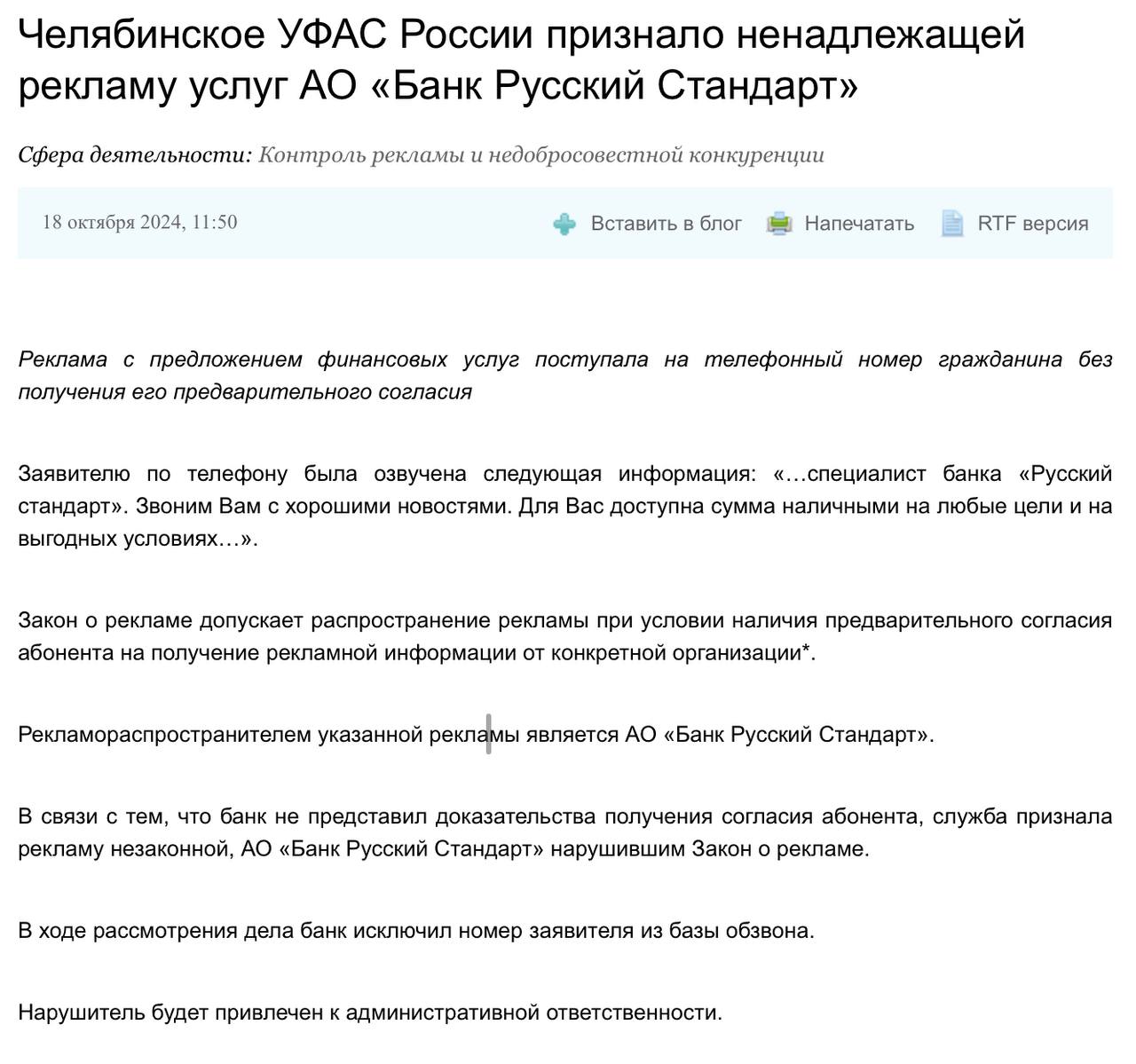 Но вот штраф за звонок оператора на телефоне — это уже интересная тенденция, обычно таких дел немного. Именно так встрял Банк Русский стандарт в Челябинске.