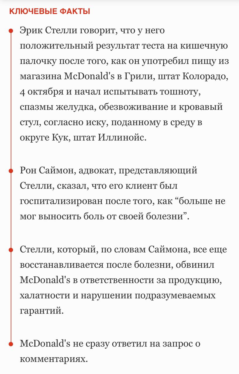 🤓 Полетели иски к Макдоналдсу, после громкого отравления в США, причиной которого вероятнее всего стало мясо в котлетах