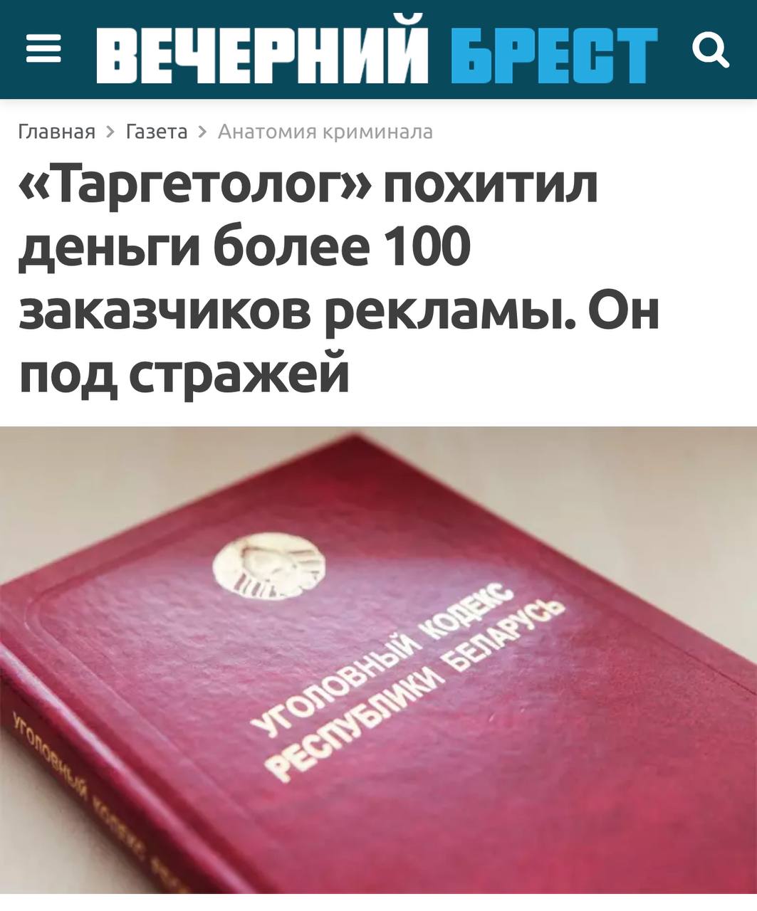 😵 Внимание! В Белоруси обезврежен серийный таргетолог! Следственным управлением УСК по Брестской области устанавливаются обстоятельства мошенничества в сфере оказания рекламных услуг в сети Интернет.