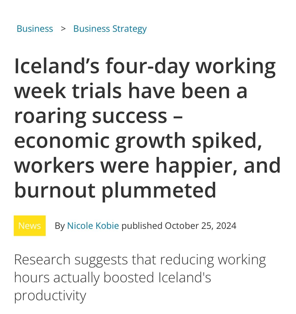 🤓 Исследования показывают, что сокращение рабочего времени на самом деле повысило производительность Исландии