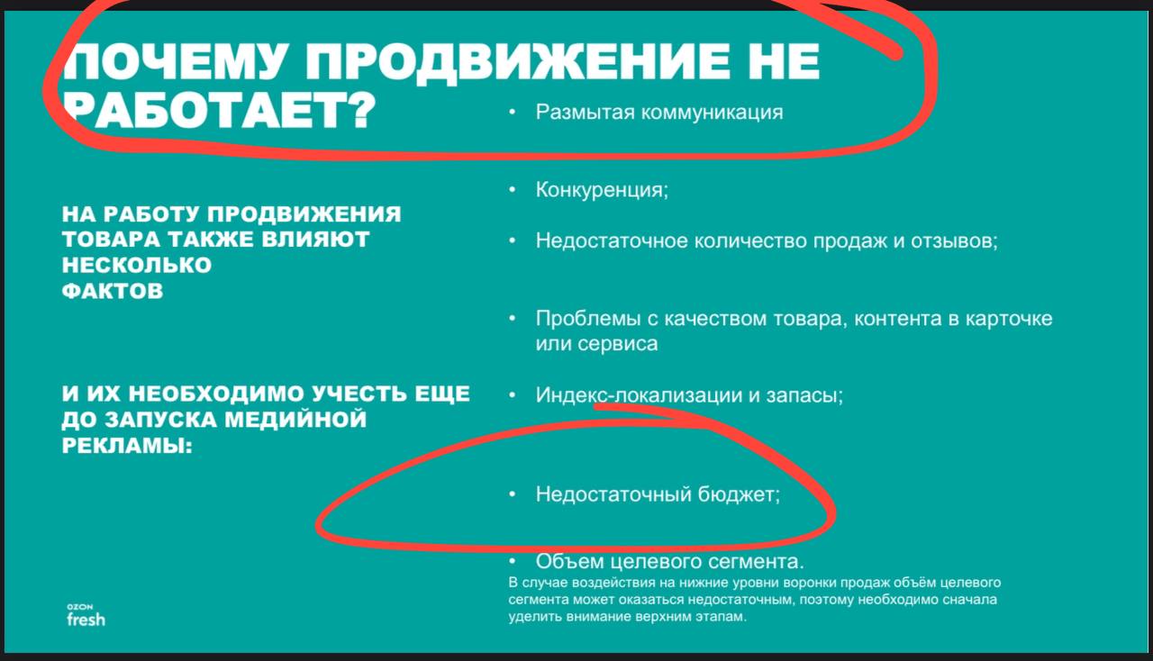 🤔 Почему продвижение не работает? Недостаточный бюджет — сообщает нам Озон Фреш. И мы не можем с этим не согласиться!