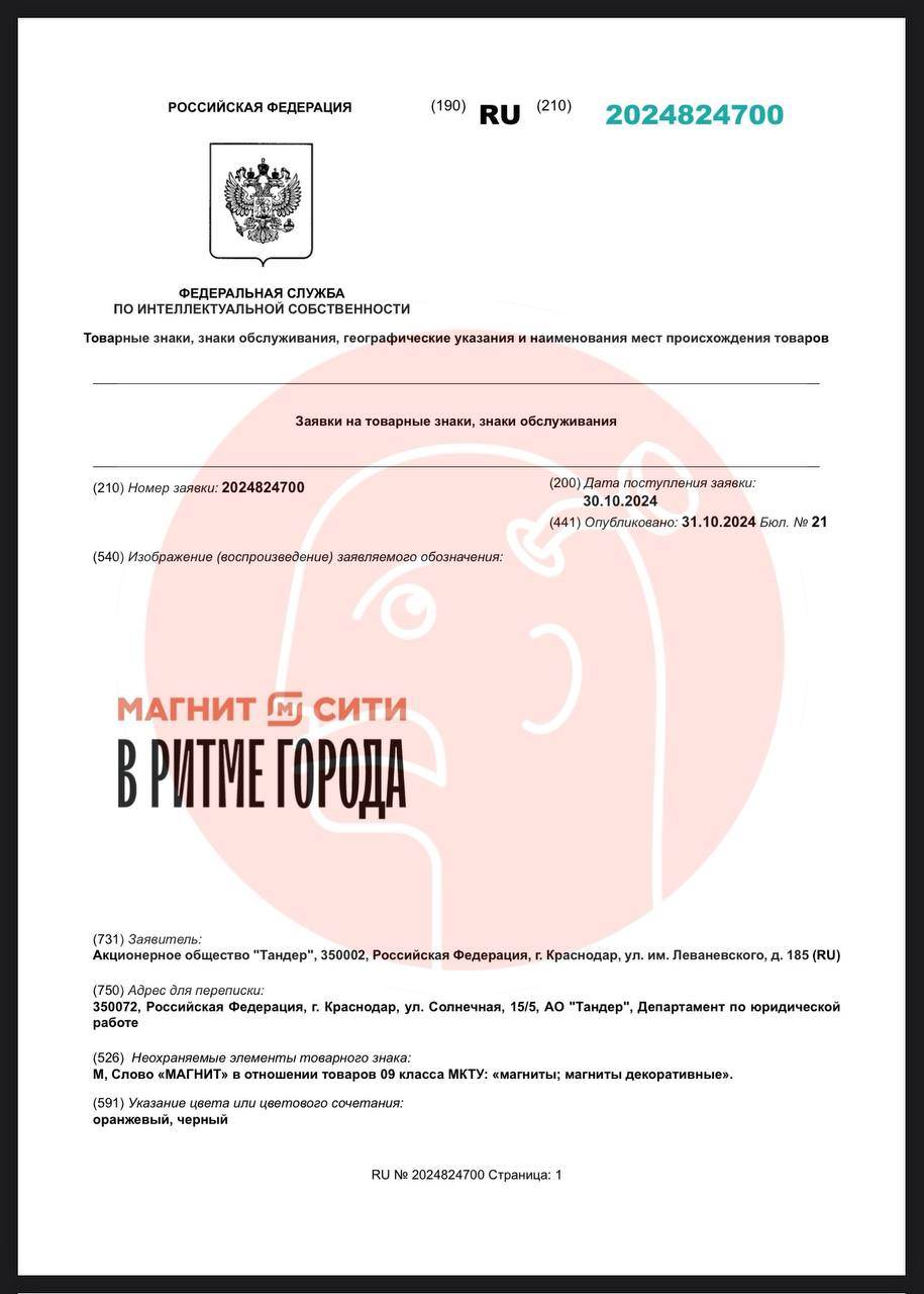 🤓 Магнит регистрирует слоган нового формата торговли «Магнит сити».