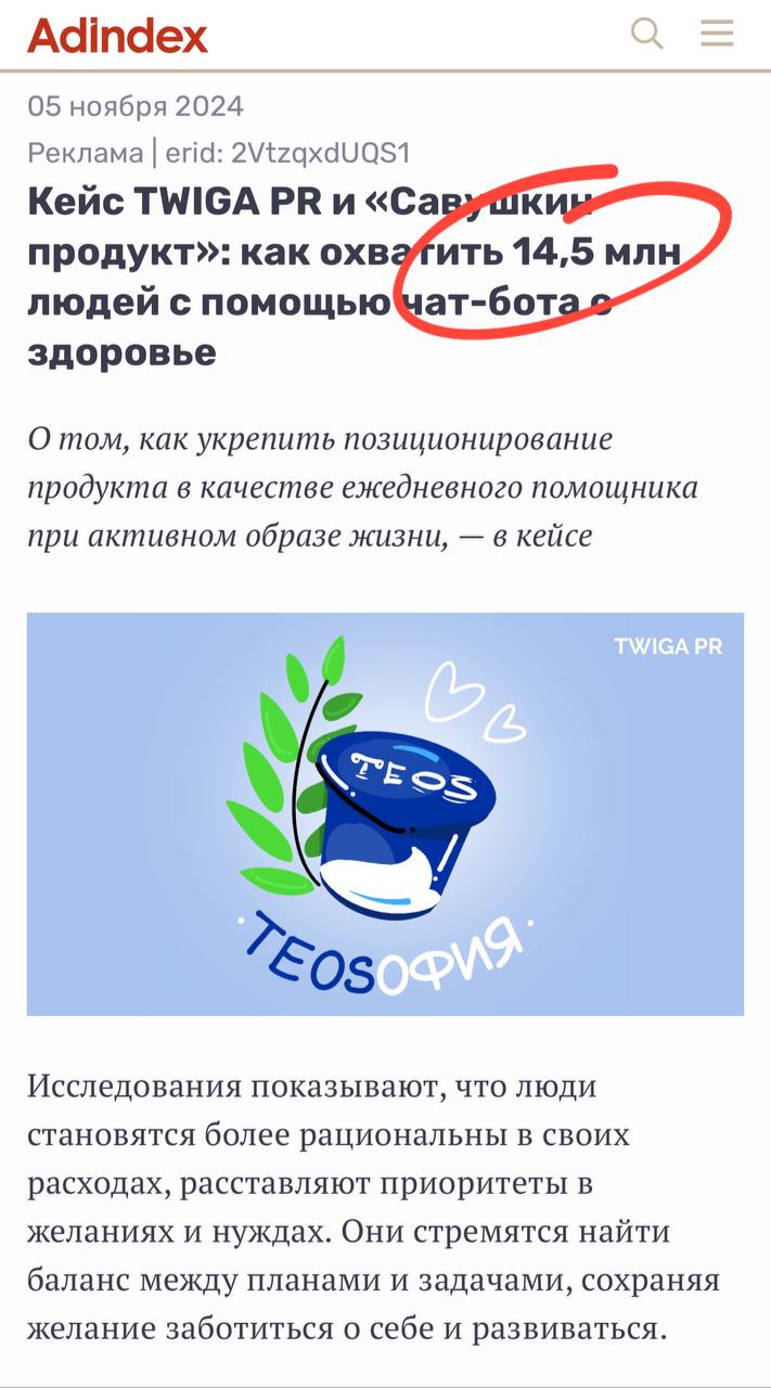 - 14 500 000 нарисованных охватов от «блогеров»;