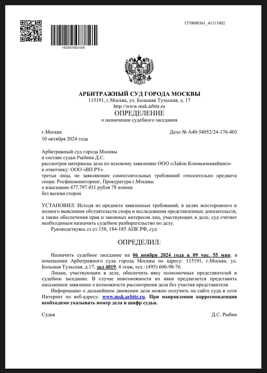 🤓Напоминаем заинтересованной публике. Заседание суда по странно разворачивающемуся иску Родной речи к Айкониексту назначено сегодня на 9:55 утра.