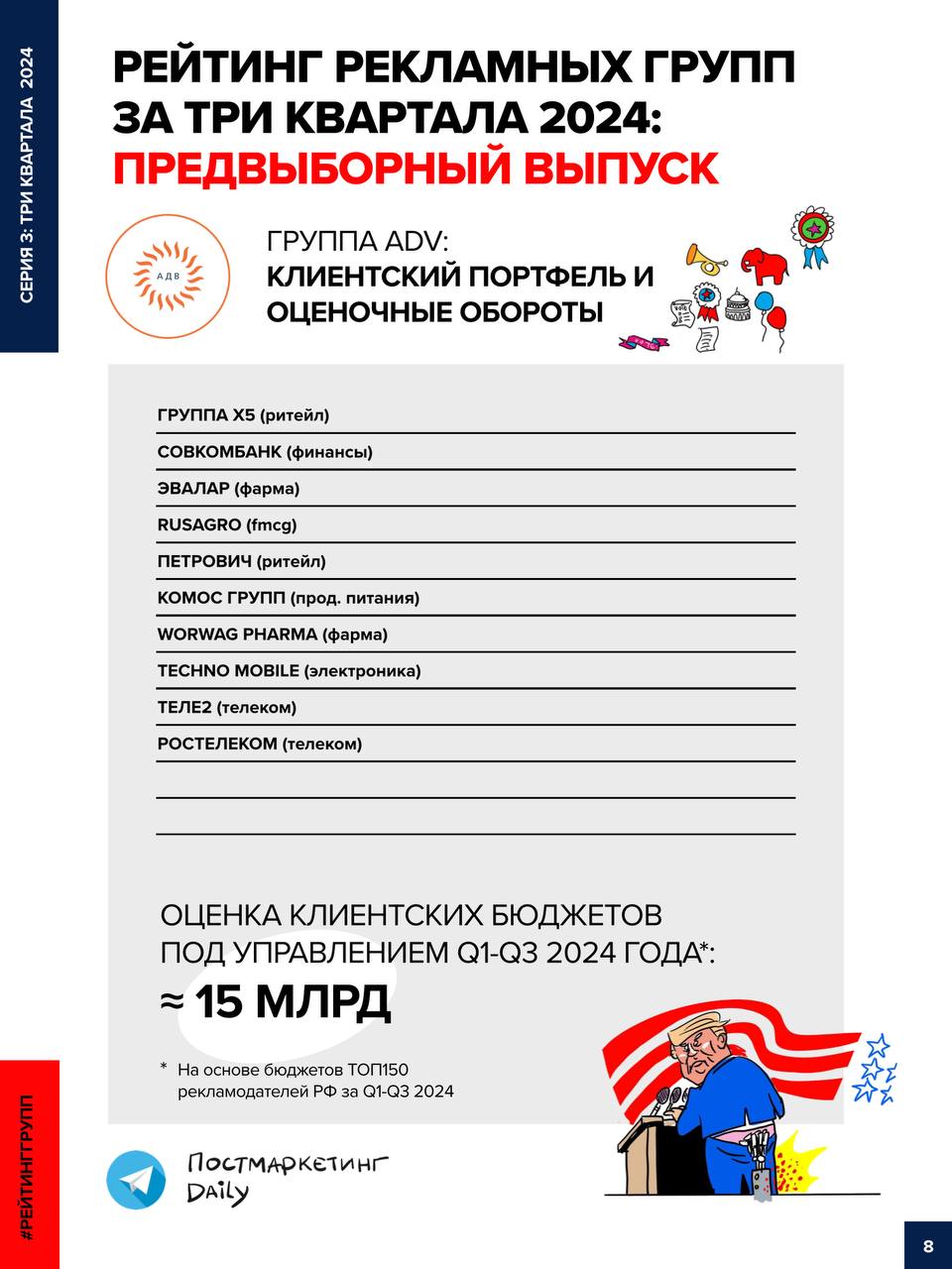 π€Π’ΡΠ΅ΡΡΡ ΡΠ΅ΡΠΈΡ Π½Π°ΡΠ΅Π³ΠΎ ΡΠ²Π»Π΅ΠΊΠ°ΡΠ΅Π»ΡΠ½ΠΎΠ³ΠΎ Π Π΅ΠΉΡΠΈΠ½Π³Π° ΠΎΠ±ΠΎΡΠΎΡΠΎΠ² ΡΠ΅ΠΊΠ»Π°ΠΌΠ½ΡΡ Π³ΡΡΠΏΠΏ ΠΈ Π°Π³Π΅Π½ΡΡΡΠ² Π·Π° 1-3 ΠΊΠ²Π°ΡΡΠ°Π» 2024 Π³ΠΎΠ΄Π°, ΠΊ ΠΊΠΎΡΠΎΡΠΎΠΌΡ ΠΏΡΠΈΠΊΠΎΠ²Π°Π½ΠΎ Π²Π½ΠΈΠΌΠ°Π½ΠΈΠ΅ Π²ΡΠ΅Π³ΠΎ ΡΡΠ½ΠΊΠ°. Π‘Π΅Π³ΠΎΠ΄Π½Ρ Π½Π° ΠΎΡΠ΅ΡΠ΅Π΄ΠΈ — ADV, Π ΠΎΠ΄Π½Π°Ρ Π Π΅ΡΡ ΠΈ Media Direction.