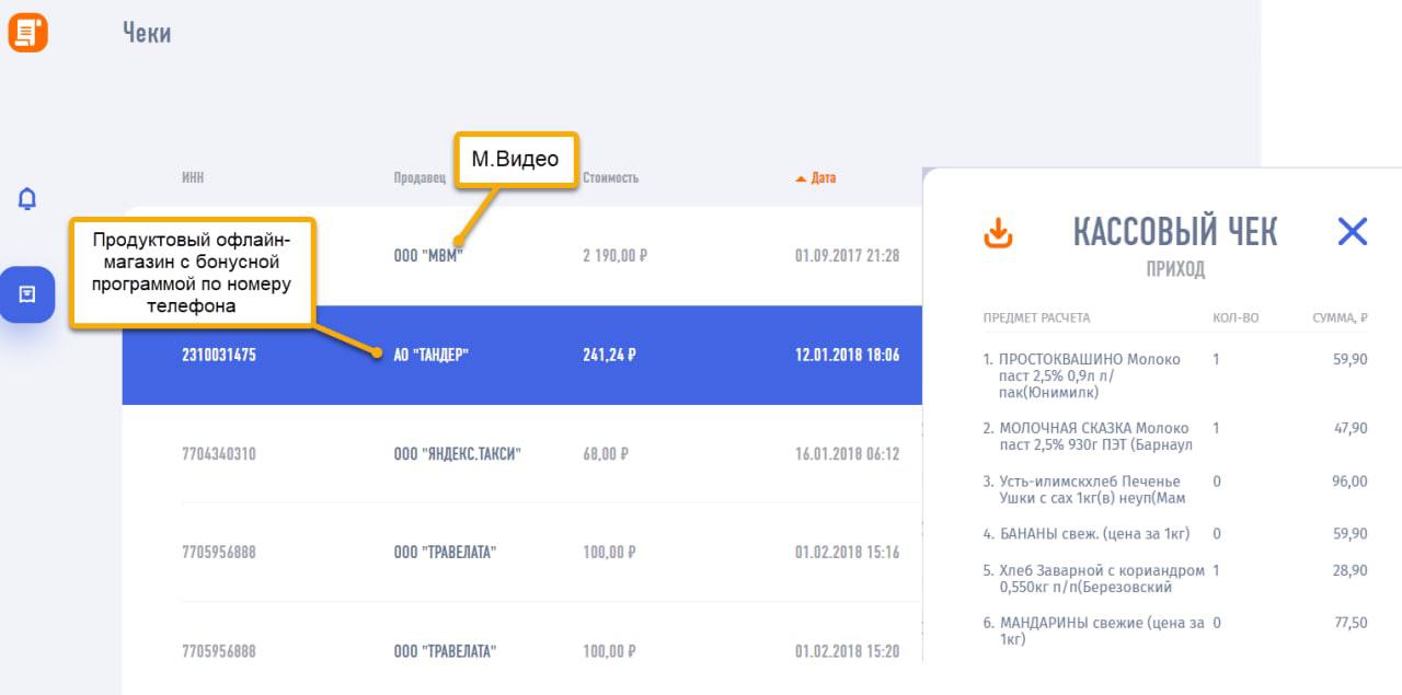 Сейчас здесь информация об онлайн-покупках в магазинах бытовой техники, оплата мобильной связи, поездки на такси через агрегаторы, сервисы доставки еды и некоторые офлайн ритейлеры. В перспективе — все.