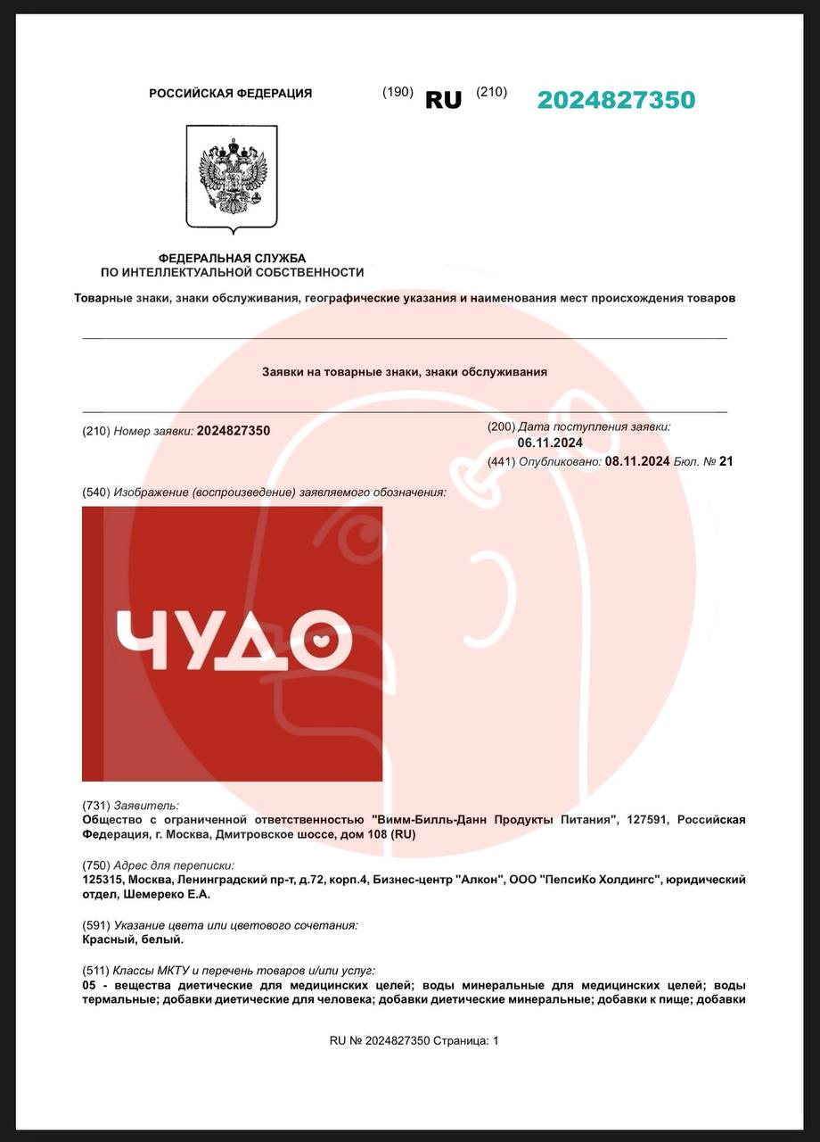 🤔Можем ошибаться, но, похоже, ВБД решил делать ребрендинг группы продуктов «Чудо», но не может определиться каким он будет. А потому подает на регистрацию все варианты, которые вышли в топ предпочтений.