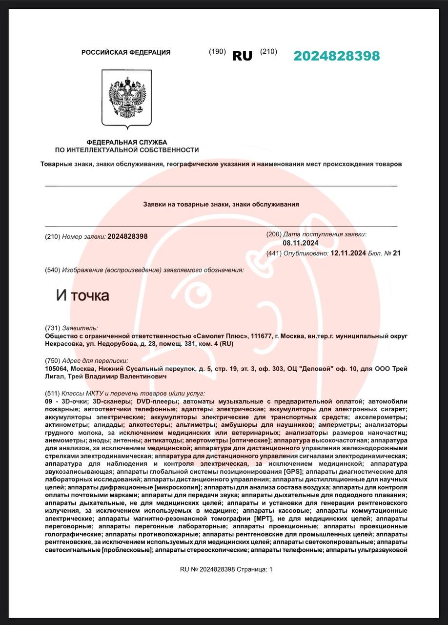 🤔 Нашли очень странную заявку. Застройщик Самолет пытается записать на себя словосочетание «и точка».