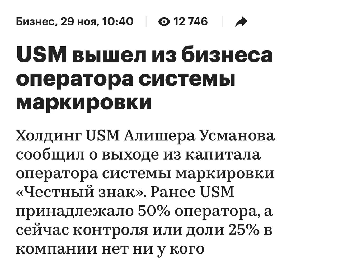 🤓 Усманов вышел из Честного знака. Казалось бы, бизнес только начался…