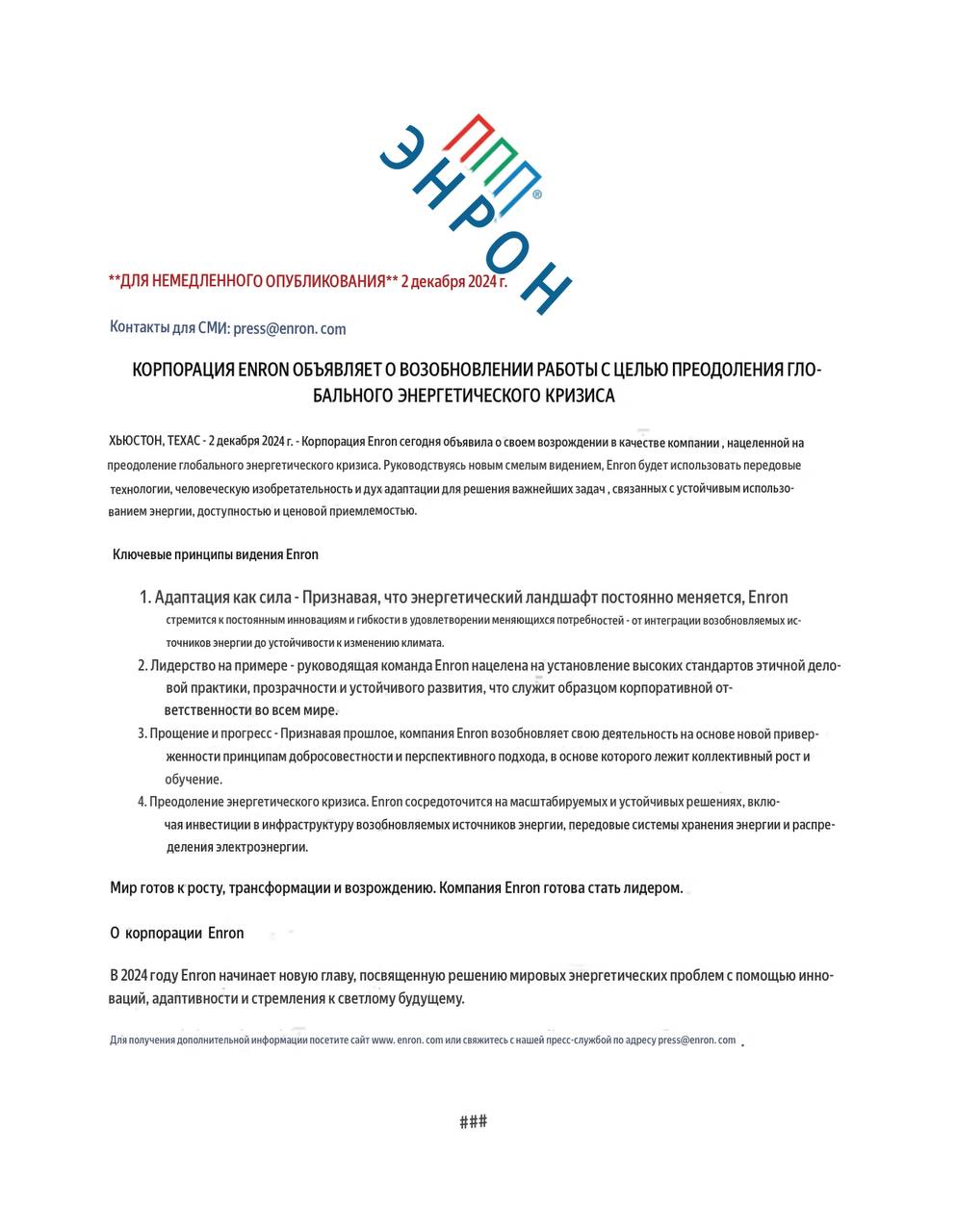 π€ ΠΠΉ! Π ΠΌΠΈΡΠ΅ ΡΠ°ΠΊΠΎΠΉ ΠΊΡΠΈΠ·ΠΈΡ, ΡΡΠΎ Π΄Π°ΠΆΠ΅ Π»Π΅Π³Π΅Π½Π΄Π°ΡΠ½ΡΠΉ Enron Π²ΠΎΡΡΡΠ°Π» ΠΈΠ· ΠΏΠ΅ΠΏΠ»Π° ΠΈ Π½Π΅Π±ΡΡΠΈΡ.