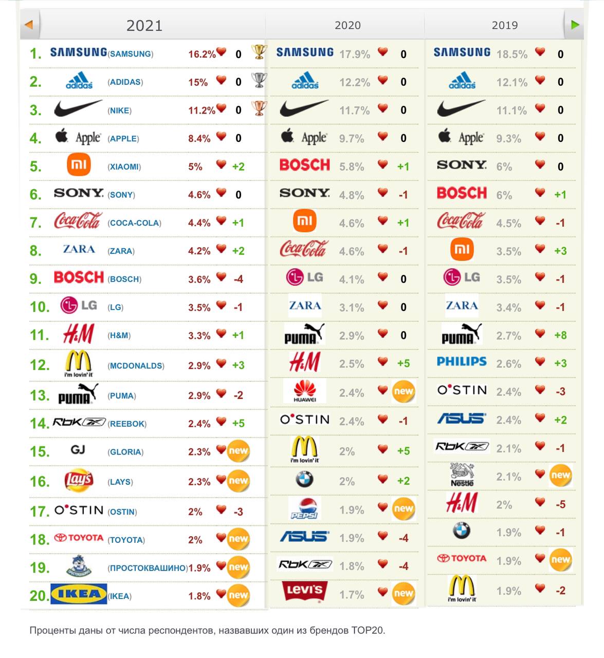 🤔 Любимые бренды россиян за 9 лет по данным OMI.