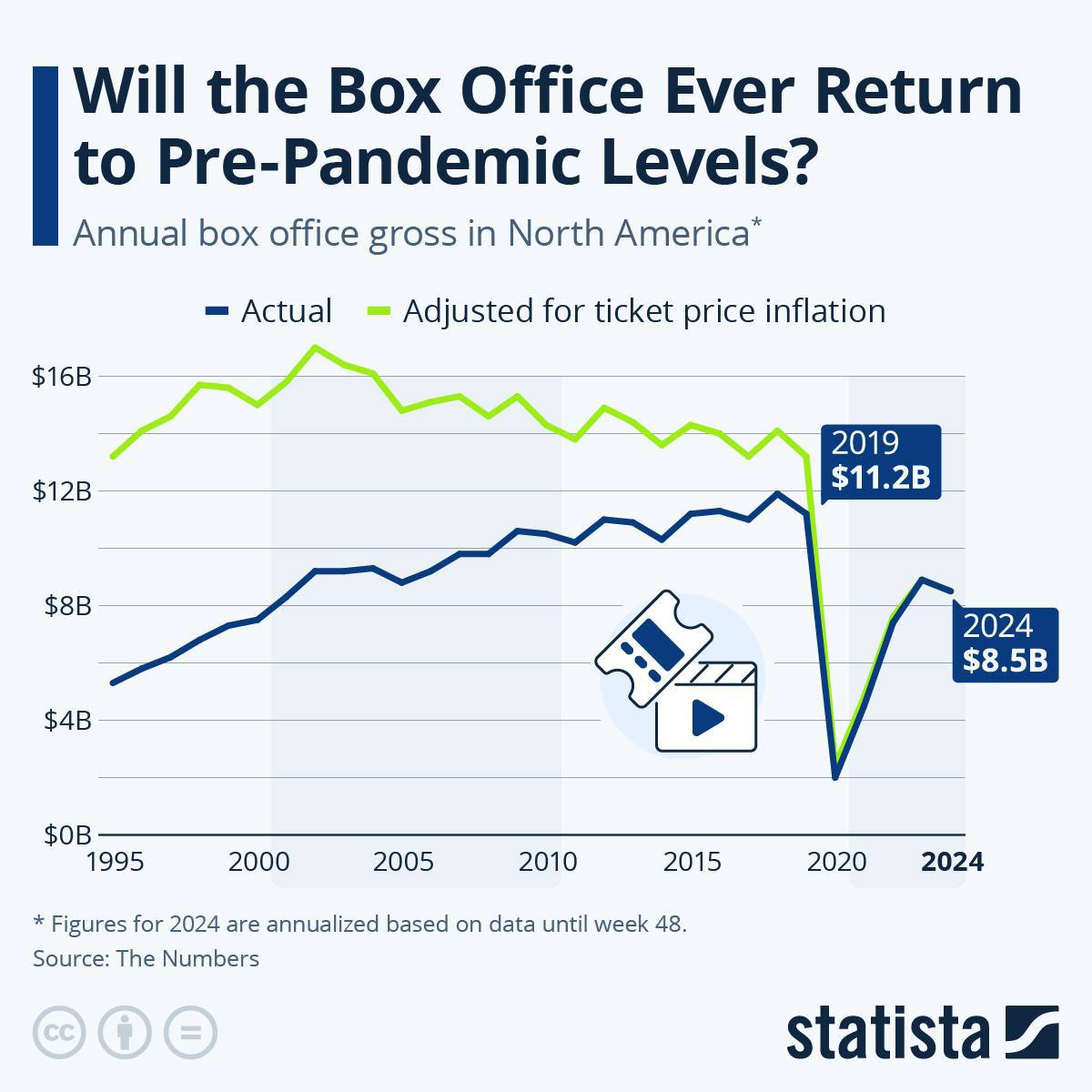 🤓 Кассовые сборы в США стремятся ввысь, но так и не вернулись к допандемийному уровню.