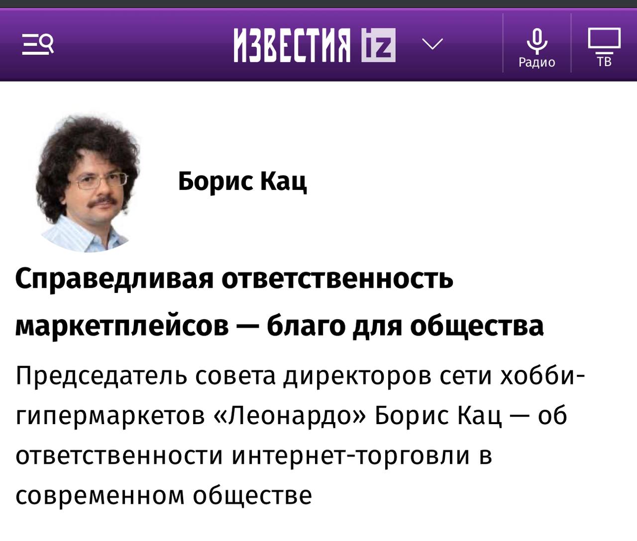 И вот — жемчужина. Манифест в Известиях очень харизматичного ритейлера Бориса Каца на тему «пора уравнять права офлайн и онлайн торговли».