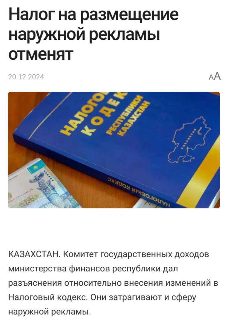 🤓 В Казахстане отменяют налог на размещение наружной рекламы.