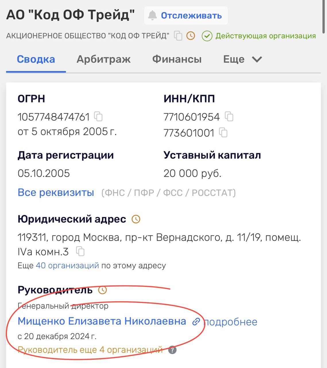 🤔 Агентство Code of Trade в структуре Media Direction сменила генерального. Возможно, это ликвидатор, поскольку за последние несколько лет компания стагнировала в ноль оборотов.