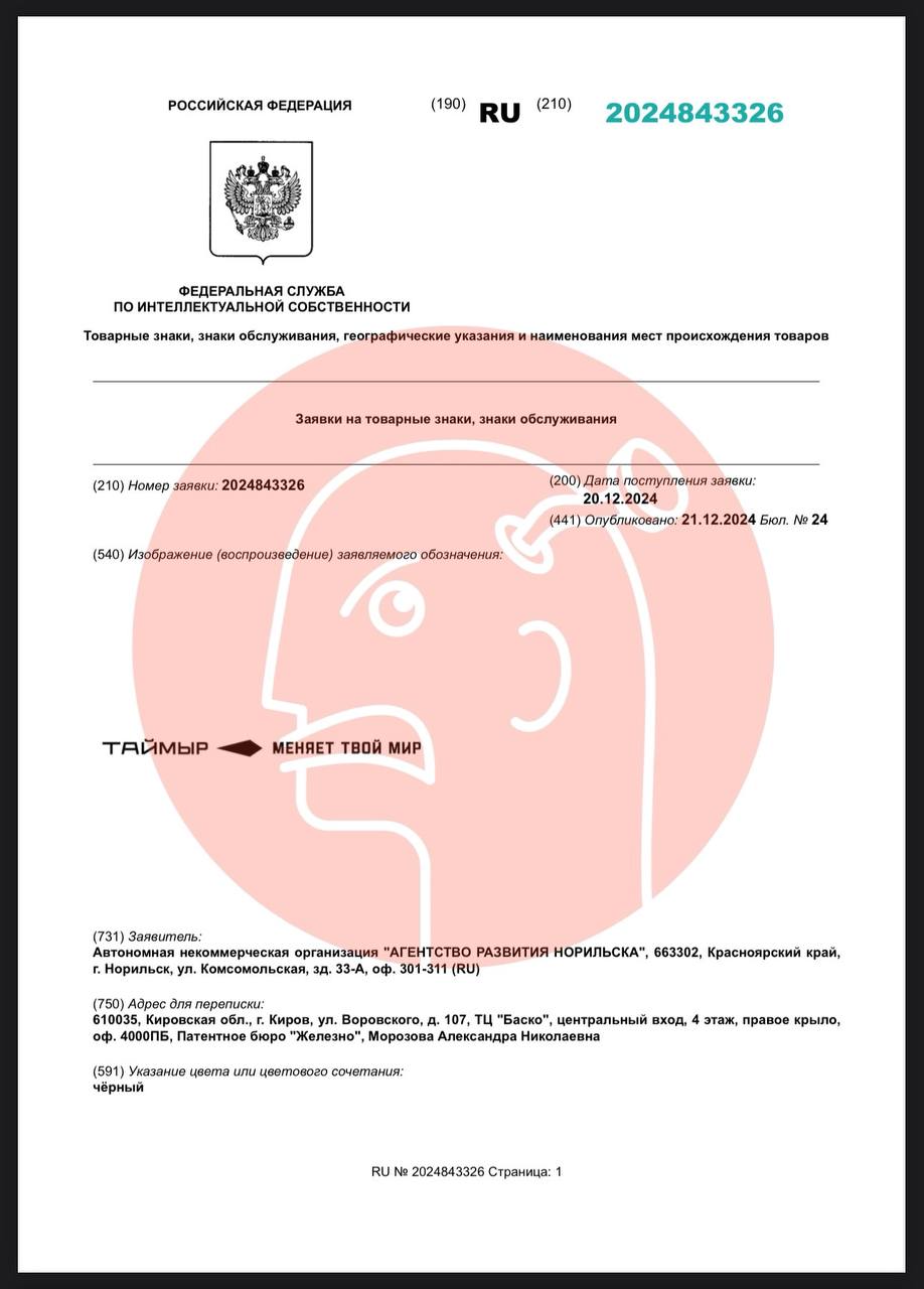 🤓 И симпатичный территориальный бренд Таймыра, поданный на регистрацию совсем недавно.