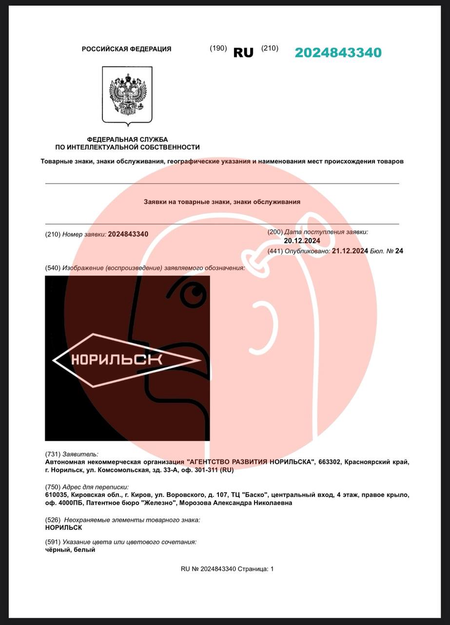 Подан на регистрацию от «Агентства развития Норильска».