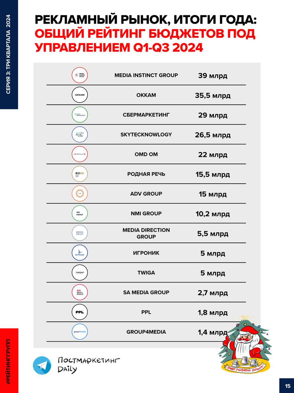 Π Π²ΠΎΡ — ΡΠ΅Π·ΡΠ»ΡΡΠ°Ρ. Π Π΅ΠΉΡΠΈΠ½Π³ ΠΎΠ±ΠΎΡΠΎΡΠΎΠ² Π³ΡΡΠΏΠΏ ΠΈ Π°Π³Π΅Π½ΡΡΡΠ² Π·Π° 3 ΠΊΠ²Π°ΡΡΠ°Π»Π° 2024 (ΡΠ΅ΡΠ²Π΅ΡΡΡΠΉ ΠΏΠΎΠ΄ΠΊΠ»ΡΡΠΈΠΌ ΡΠΎΠ²ΡΠ΅ΠΌ ΡΠΊΠΎΡΠΎ, Π² ΡΠ΅ΡΠ΅Π΄ΠΈΠ½Π΅ ΡΠ½Π²Π°ΡΡ).