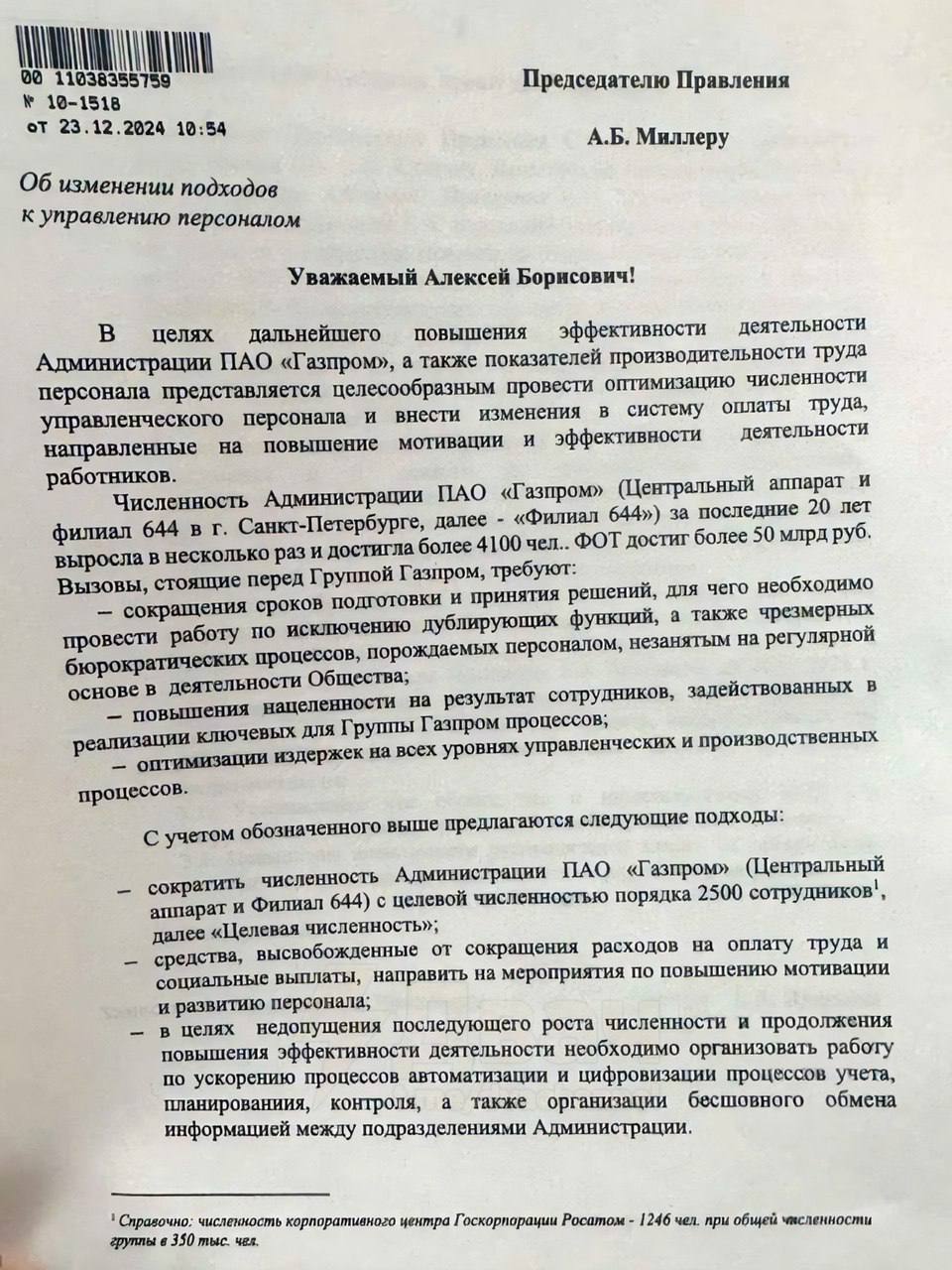 🤓 Газпром подтвердил подлинность письма Илюхиной слитого в телеграм каналы, относительно планируемой масштабной оптимизации штата.