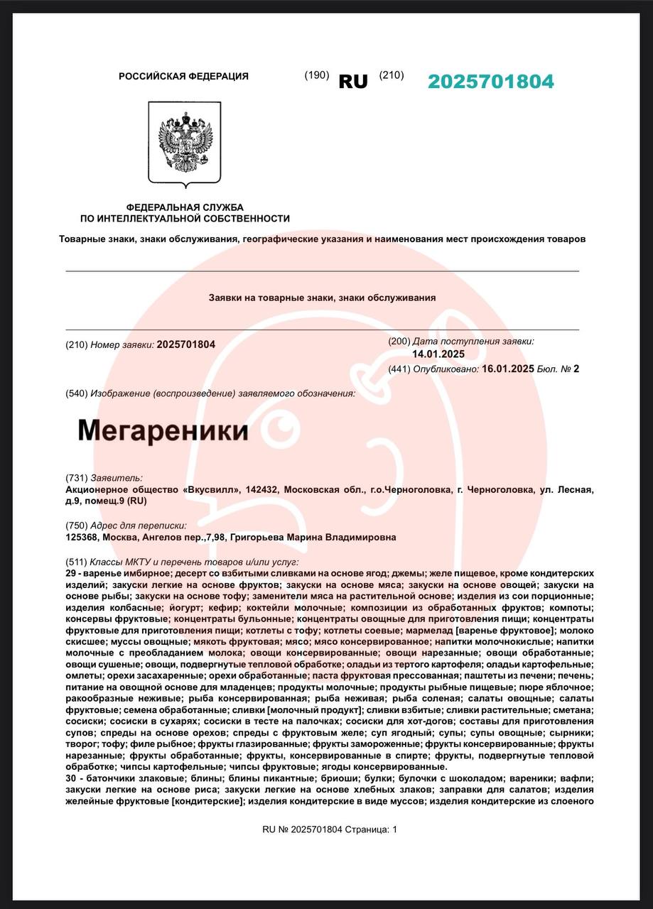 🤔 Удручающая подборка свежих СТМов от крупнейших торговых сетей, поданных на регистрацию всего за пару дней. Радует только Вкусвилл и его «Мегаренники».
