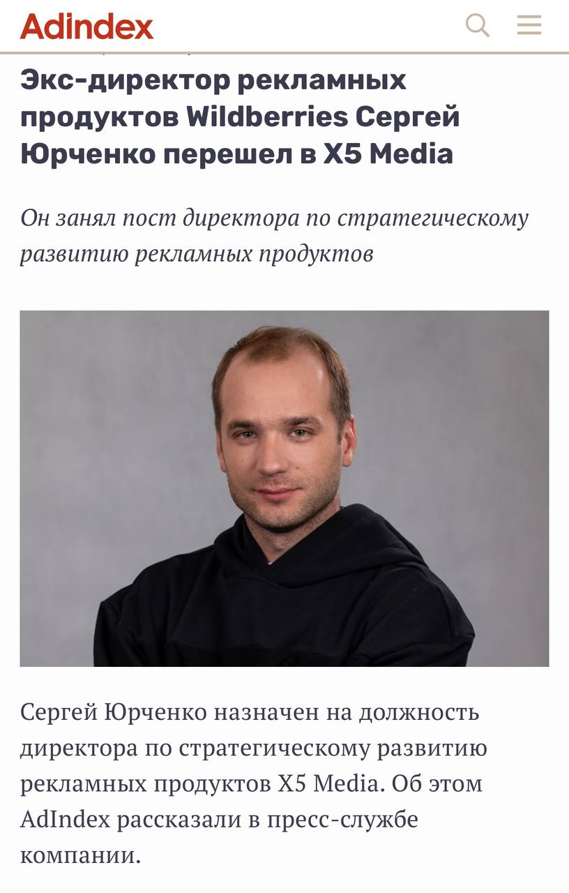 Уточнение. До работы в Wildberries Сергей возглавлял направление рекламных продуктов в «СберМаркете» и МТС.