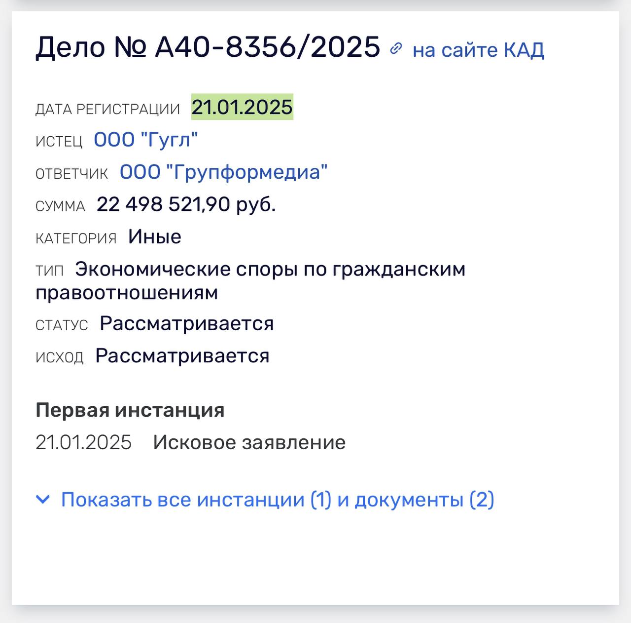 🤓 Ежедневный вестник второго круга исков управляющего Гугля к росиийским агентствам.