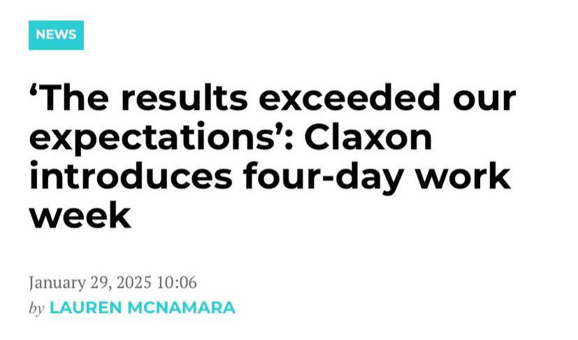 🤓 Их нравы. Claxon (Австралийское интегрированное агентство, специализирующееся на медиа, креативных, исследовательских и информационных услугах) с сегодняшнего дня ввело постоянную четырёхдневную рабочую неделю.