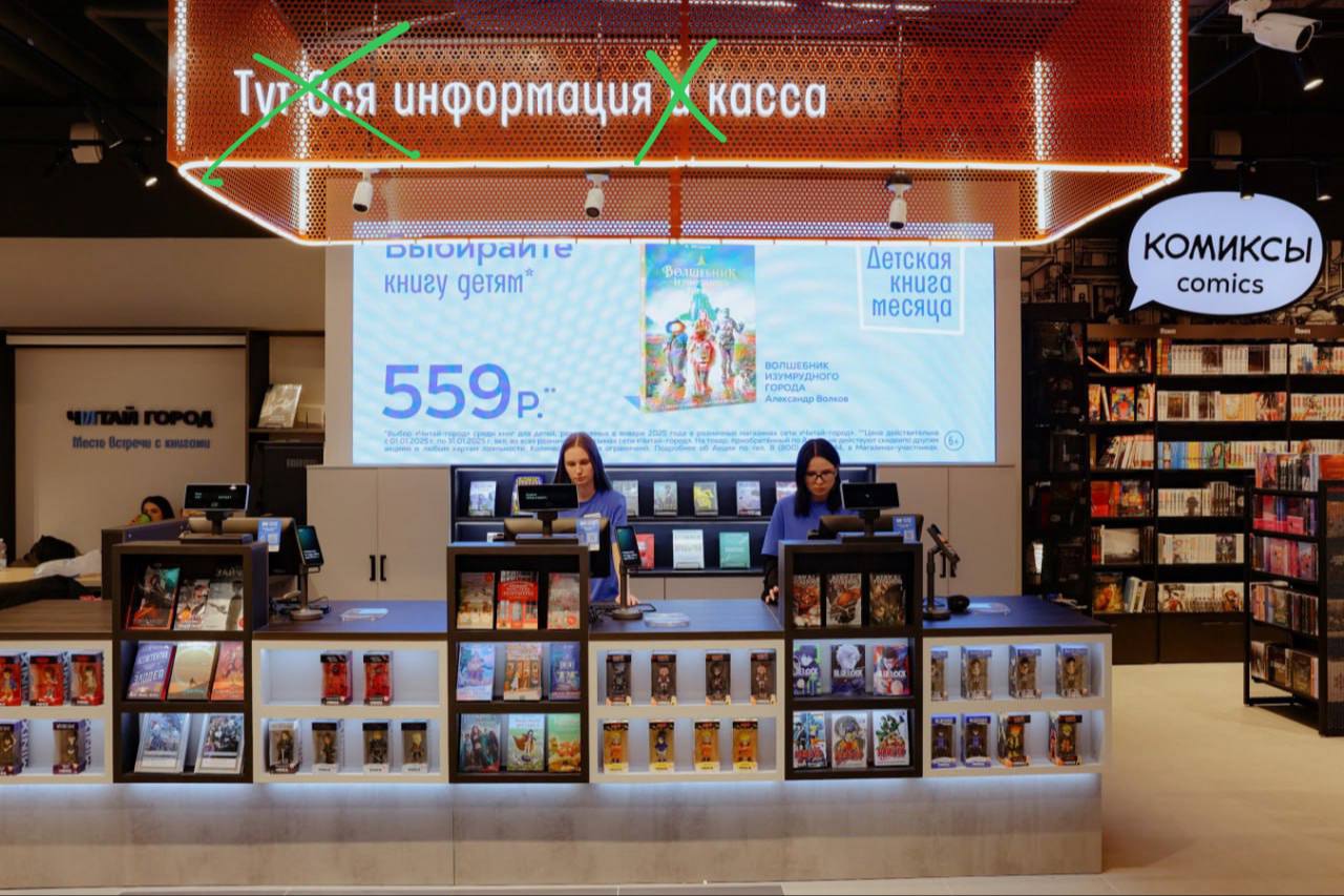 Ребрендинг Читай-города (пока одного — в Авике) в темную тему.