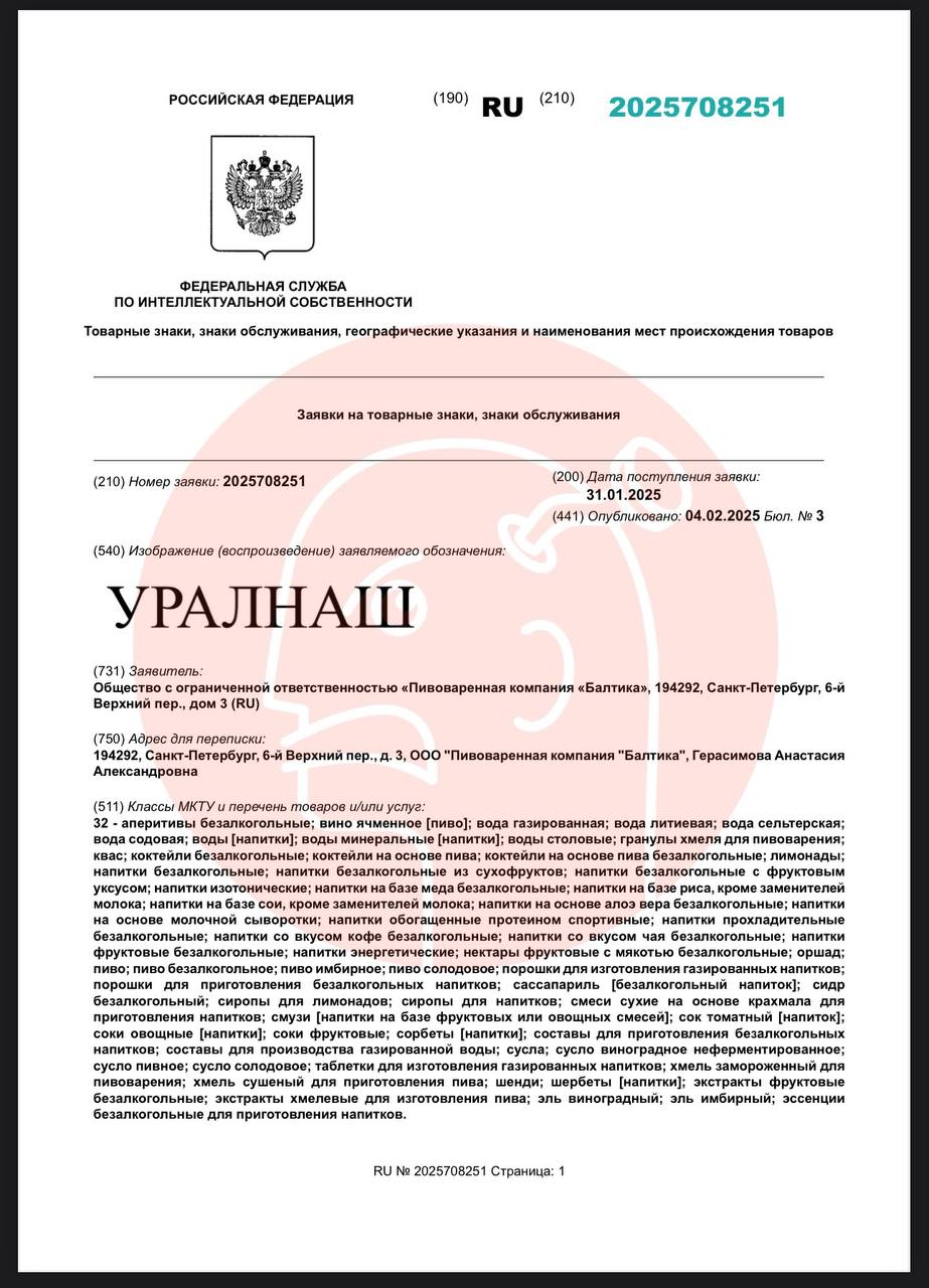 🤔Компания Балтика регистрирует провокационное для местного населения наименование «Уралнаш».