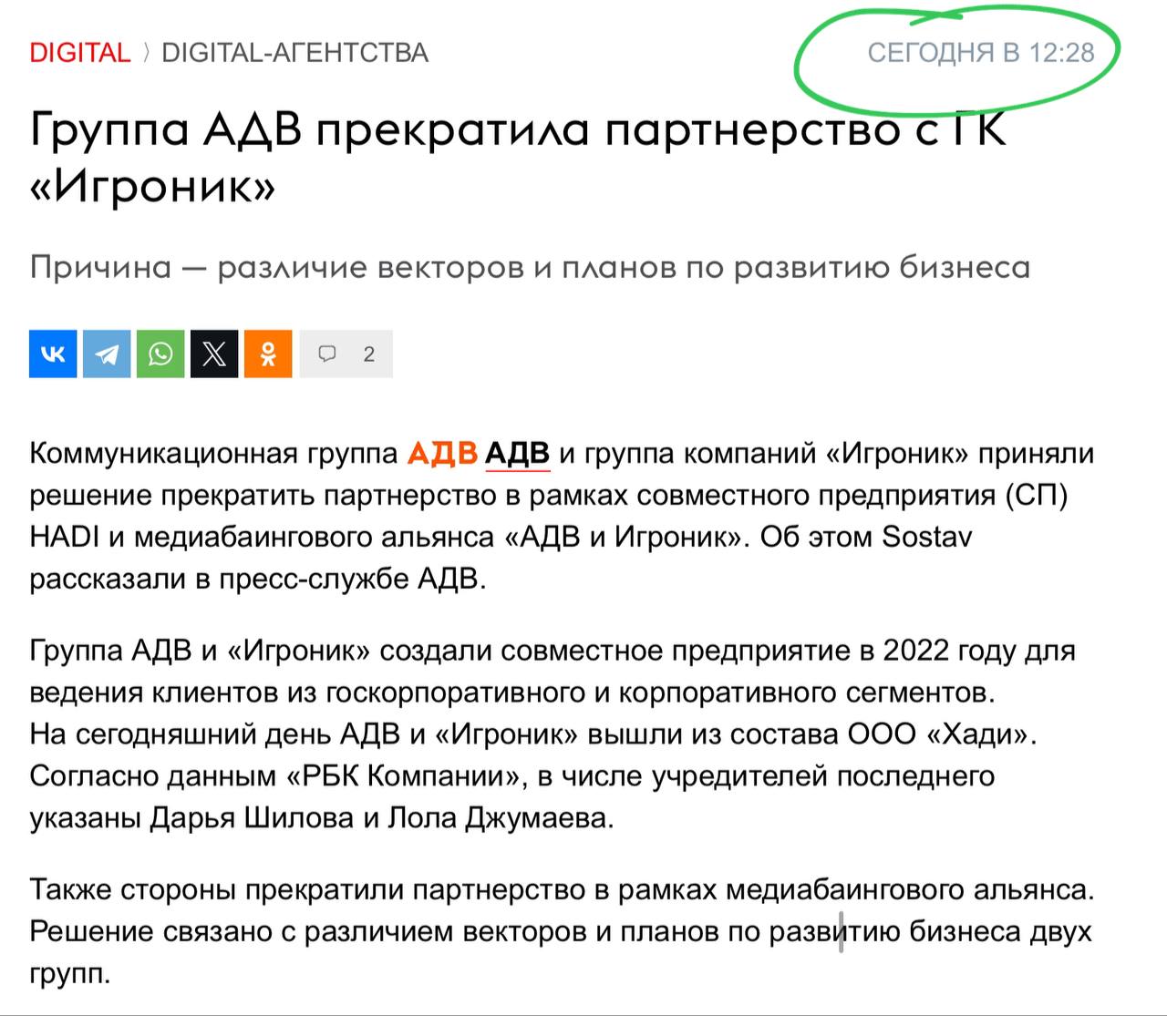 Например, мы заметили окончательный выход АДВ из совместного с Игроником юрлица — еще в начале декабря.