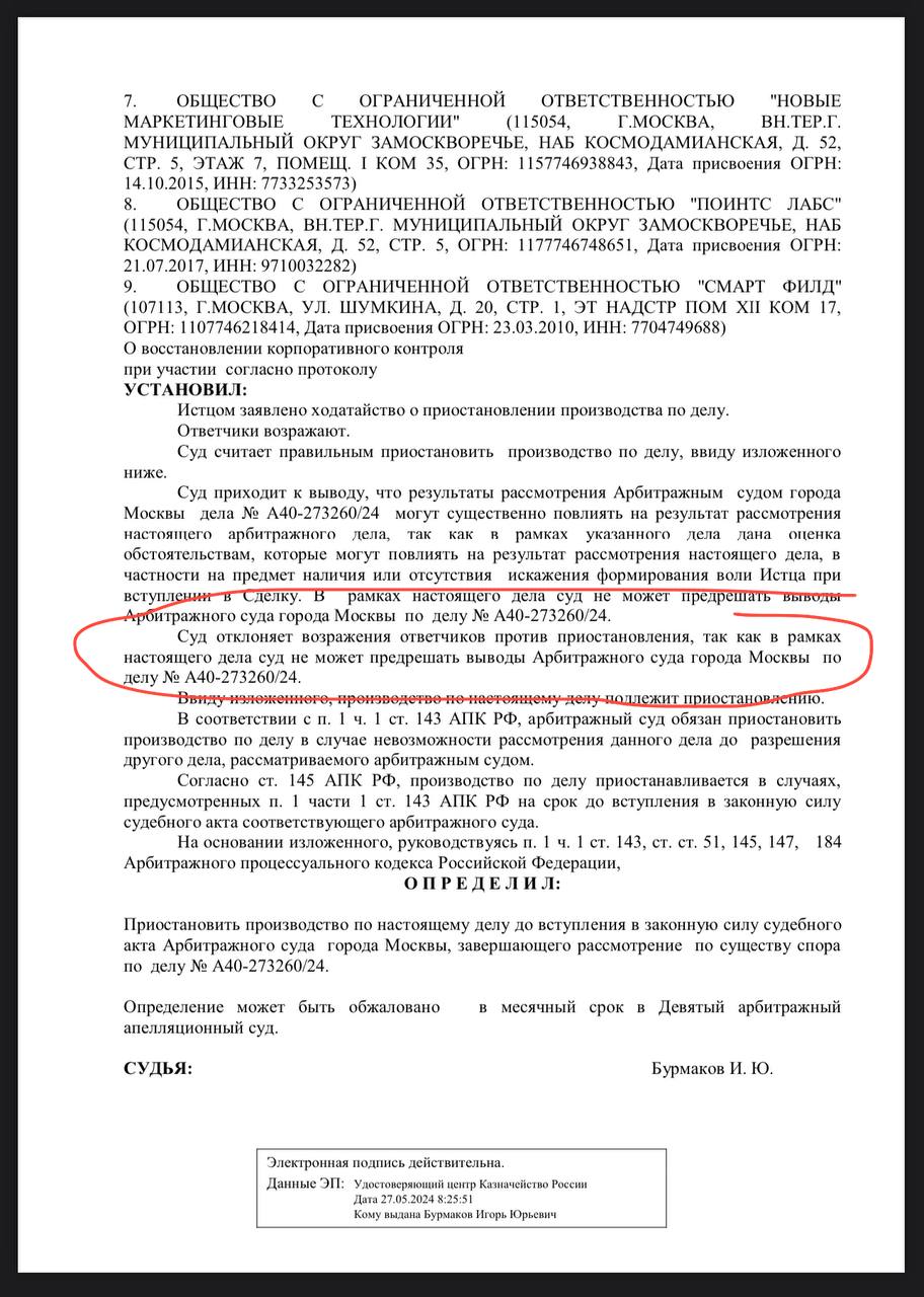 Как и заявлял истец ранее на страницах Постмаркетинга — суд решил приостановить дело до факта разрешения первого иска.
