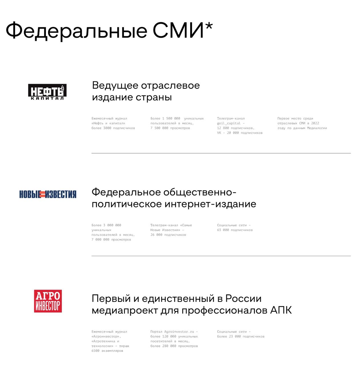 Структура СМИ в активе ходинга — на скринах выше. Примечательно, что им принадлежит также «Росбалт», который был признан иноагентом, а спустя два года был исключен из списка.