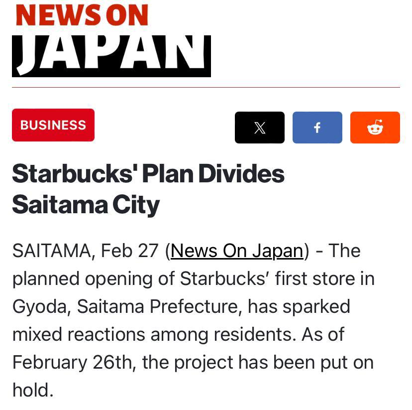 Открытие первой кофейни в Гёда, Япония приостановлено из-за разногласий среди жителей.