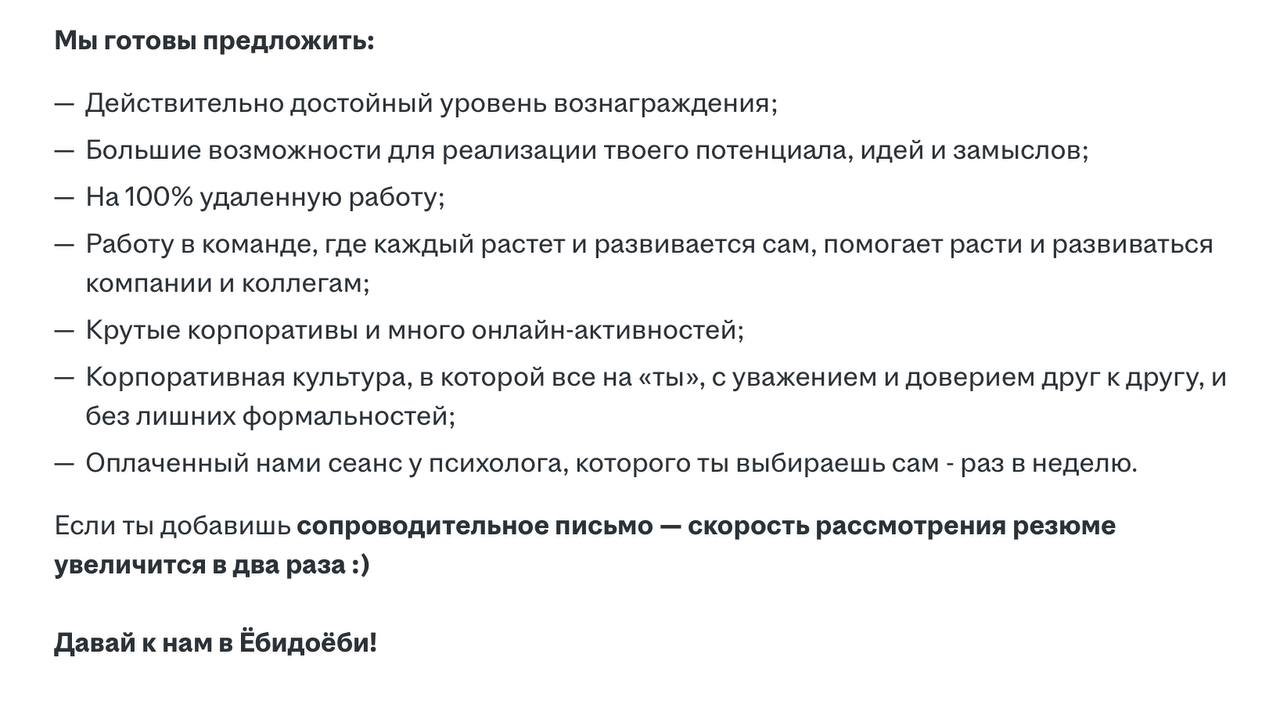 🤓Обнаружены идеальные условия труда для зумеров. Тут все — 100-процентная удаленка, оплачиваемый психолог от работодателя, возможность самореализации, общение на «ты» и все такое…
