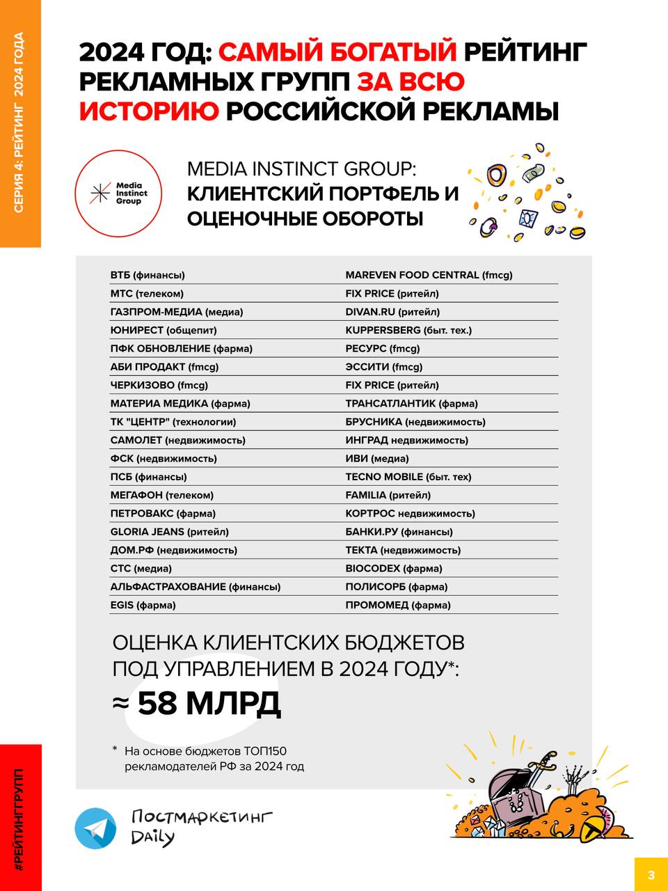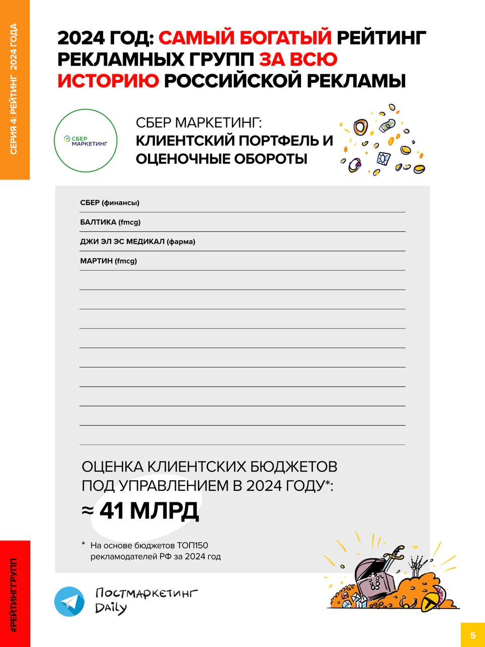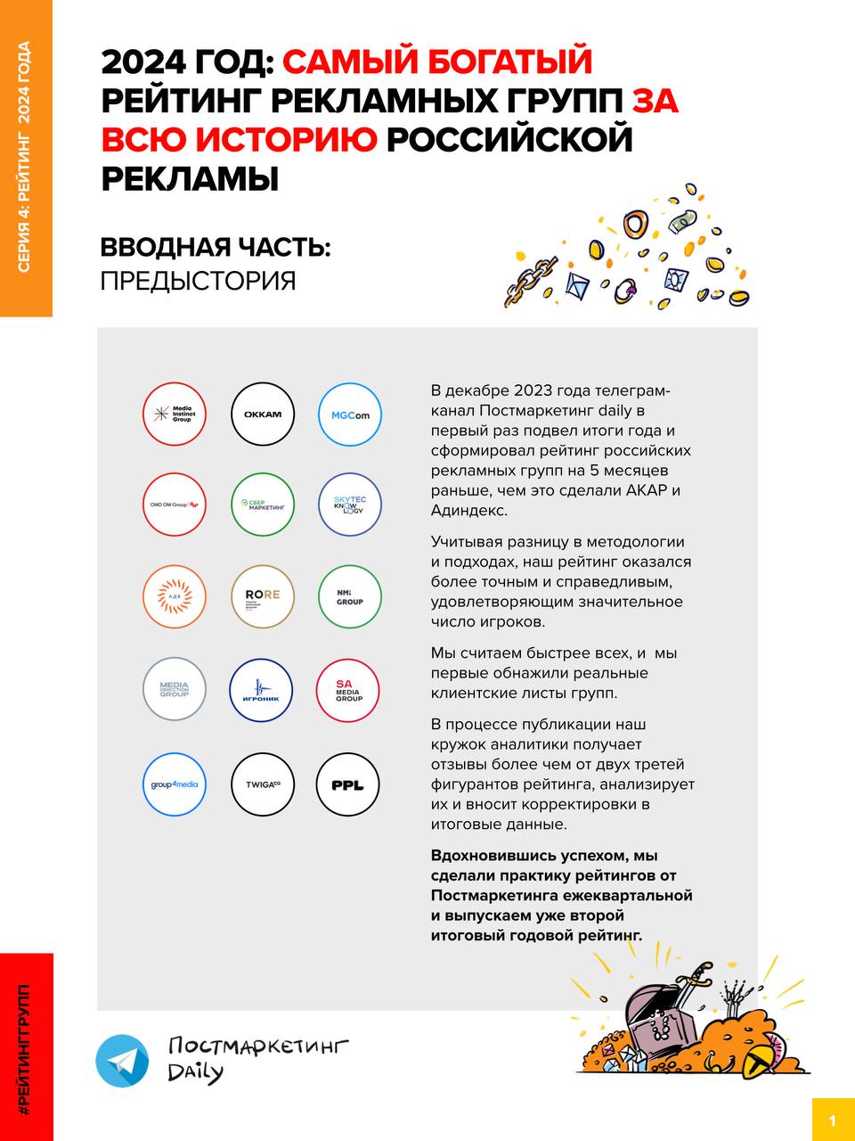 ⚡️Полный Рейтинг рекламных групп и агентств за 2024 год от Постмаркетинг Daily. Самый богатый Рейтинг за всю историю российской рекламы.